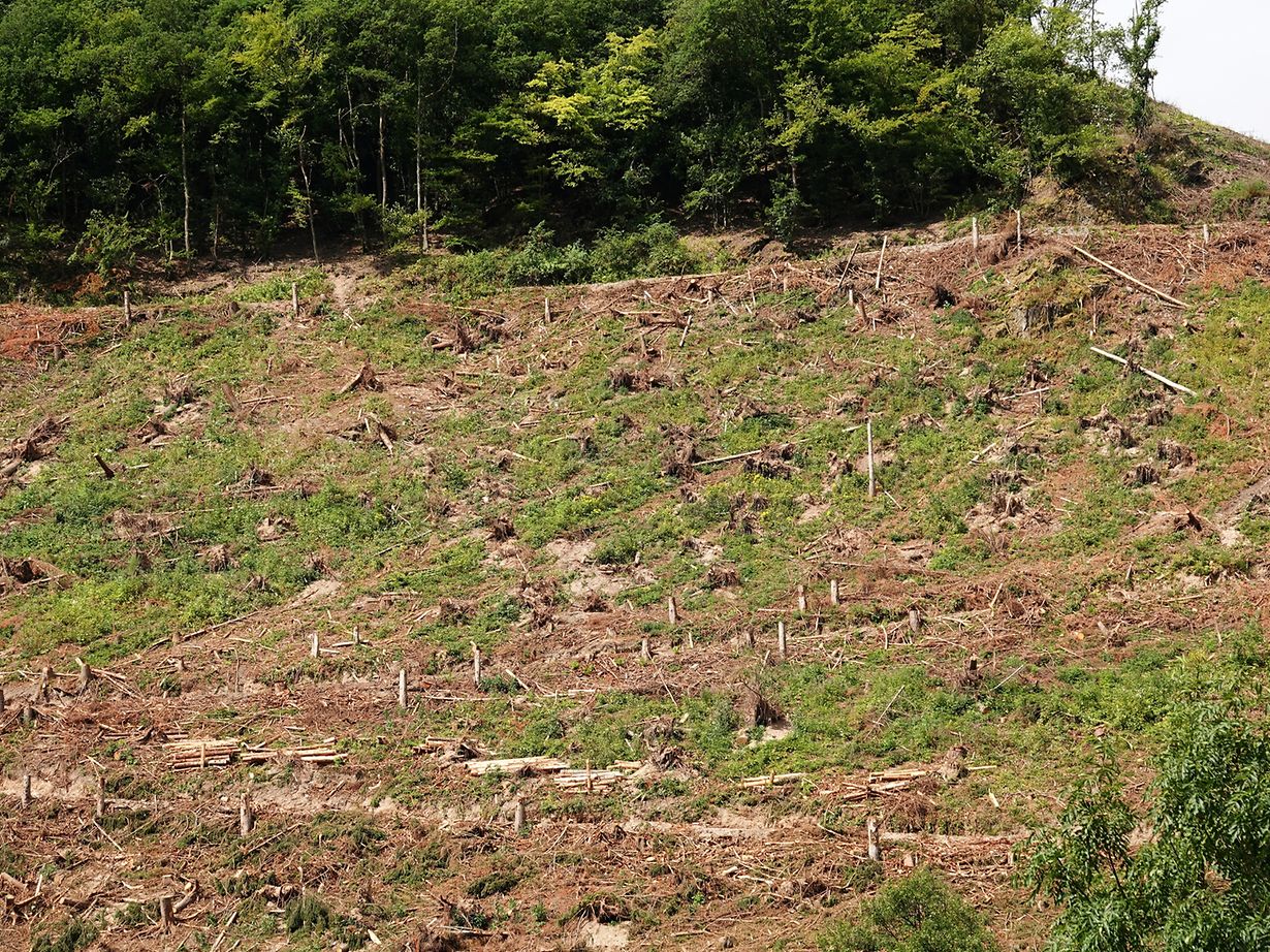 Foto von mir bei Michelau am 17.7.2018 gmacht, steiler abgeholzter Hang,