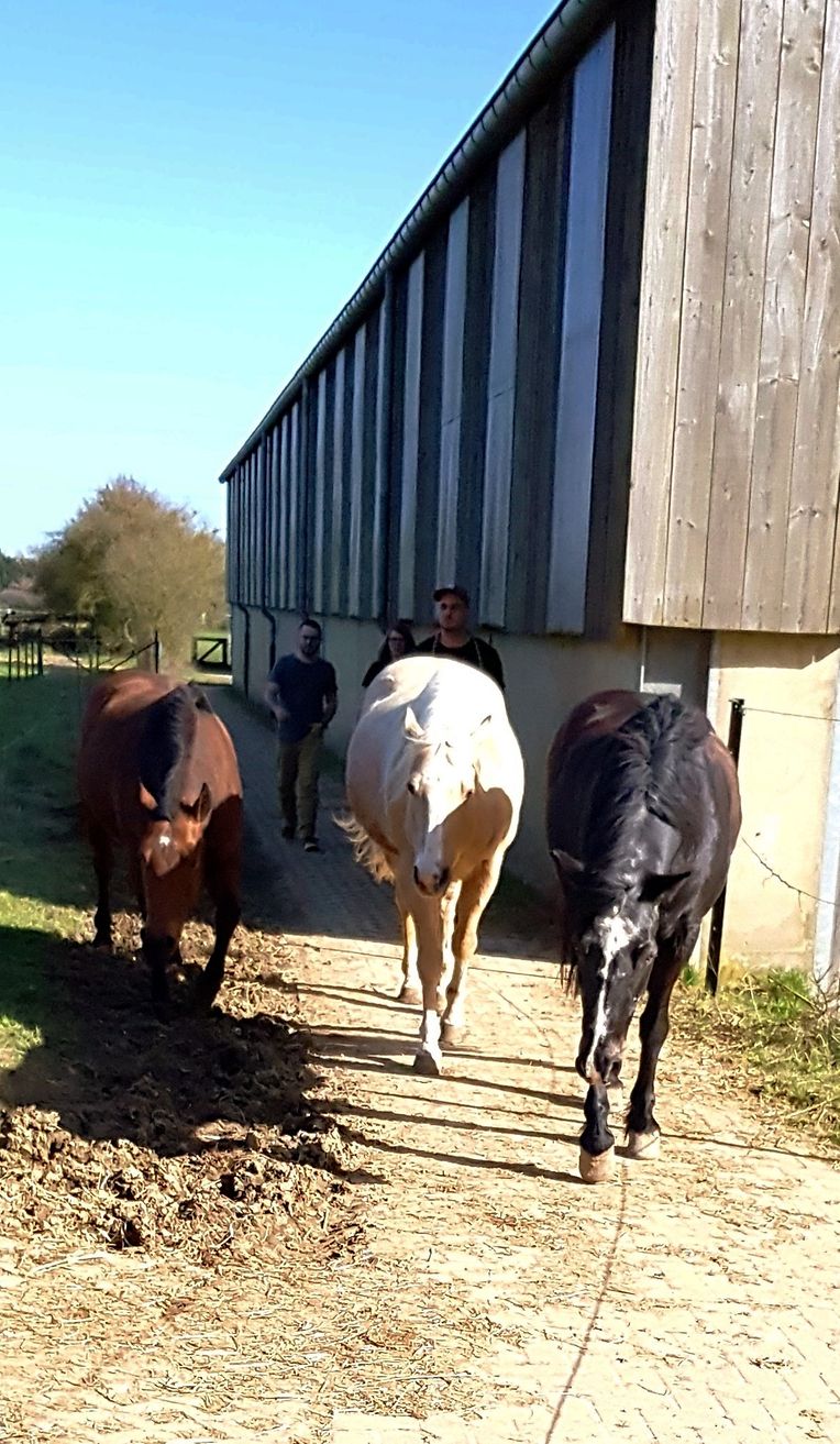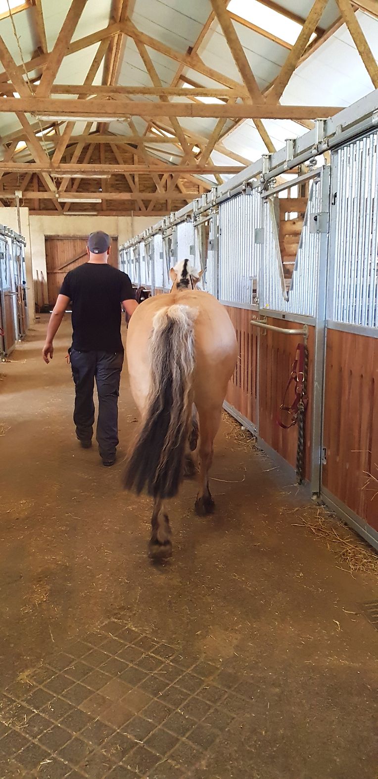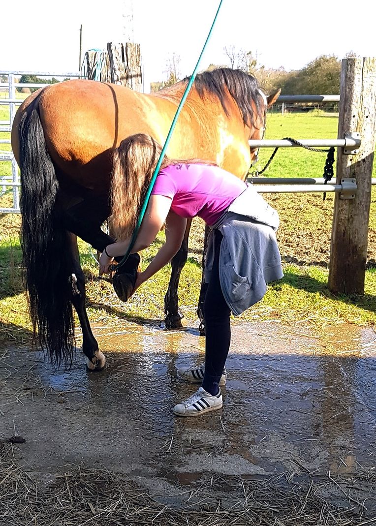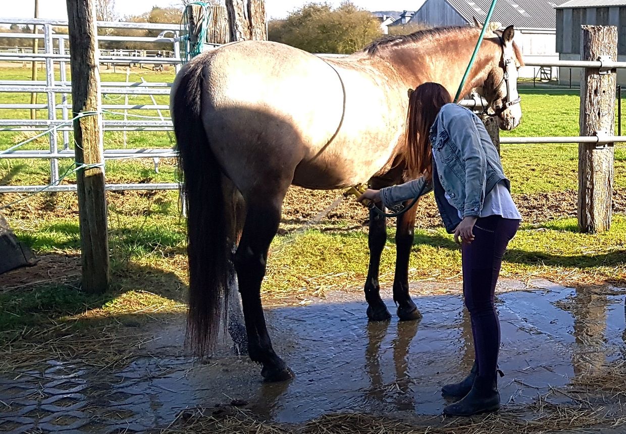 Owes,ginn d’Päerd eragefouert, kréien eng kleng Dusch a duerno hiert Fudder.