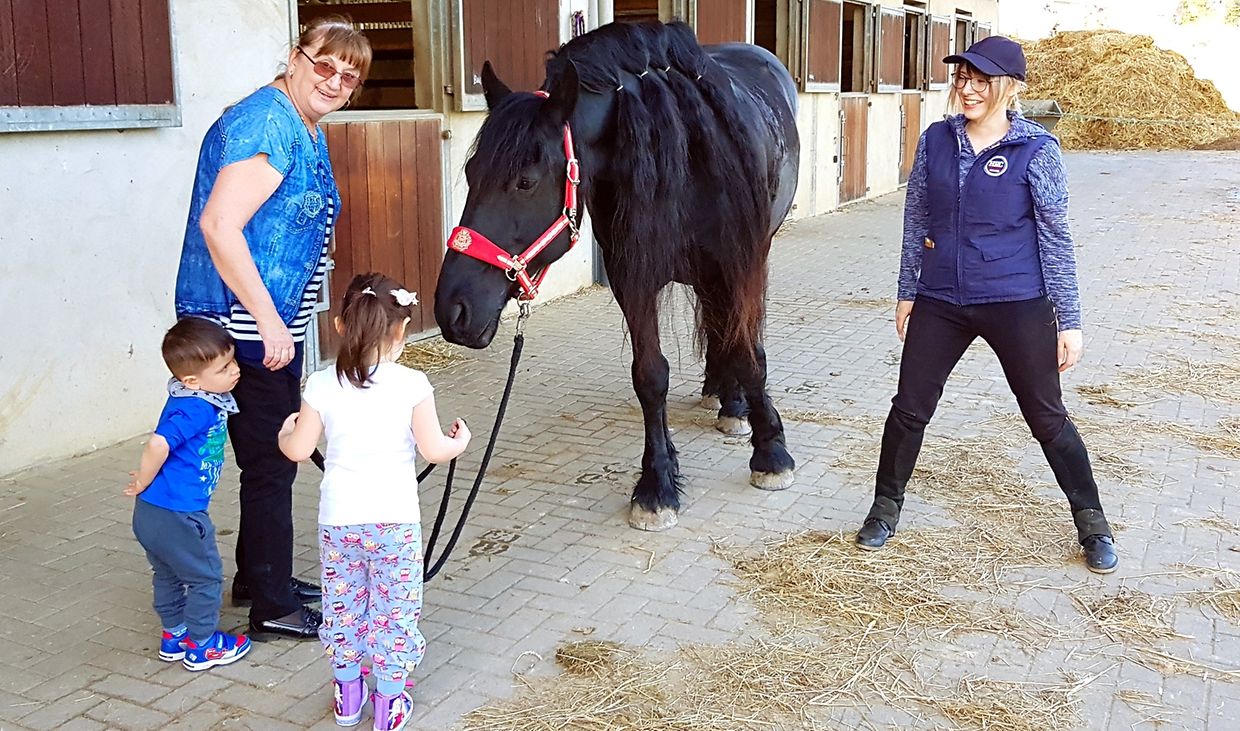 D‘ Reider, maachen sech eng Freed draus de Kanner ze erklären, an hinnen ze weisen wéi een dem Päerd d’Wuerzel richteg ze friesse gëtt.