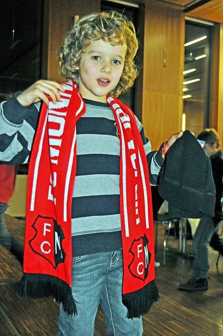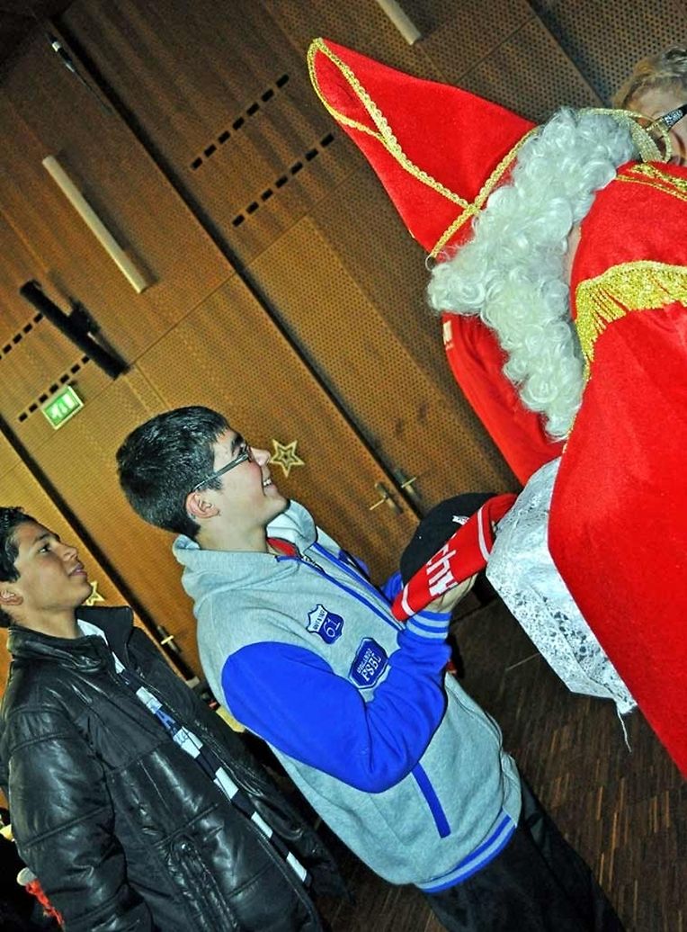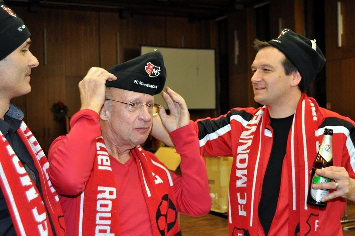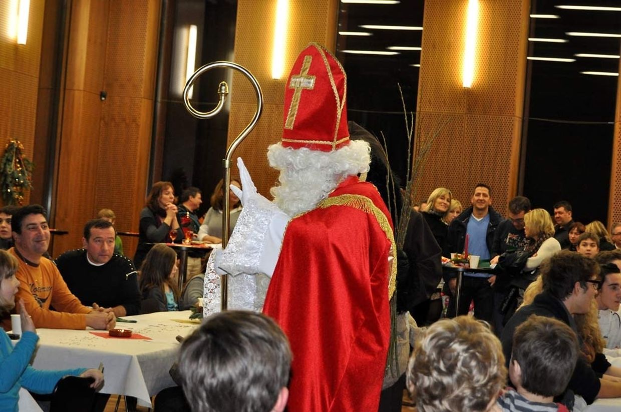 Do war Zäit gutt iwwerbréckt gi well de Kleeschen hat e wéineg Verspéidung. Mee du koum en endlech a Begleedung vun sengem Gesell, den Houseker. Hien huet deene ganz klengen e grousse Luef ausgeschwat fir hier grouss Bereetschaft a Motivatioun déi si un den Dag leeën, fir hier fläisseg Aarbecht a fir déi ganz gutt Leeschtung vun de Bambinis an dëser Saison, déi nach iwwerhaapt kee Match verluer hunn a schonns gutt 130 Goaler am Championnat geschoss hunn. Da sinn Trainer mat hire Meedercher a Jongen op de Podium geruff ginn, Kategorie pro Kategorie, vun de Bambinis bis Juniors! Si hunn all e ganz flotte Cadeau vum Kleesche kritt: eng flott Mutz an e flotte Schal mat neie Slogan vum FC Monnerech "Zesummen een Zil: Rout-Schwarz". Trainer kruten eng Rutt vun deem ellenen Houseker. All Spiller krut doriwwer eraus och nach Bonge fir eng Consommatioun an e Wierschtchen.