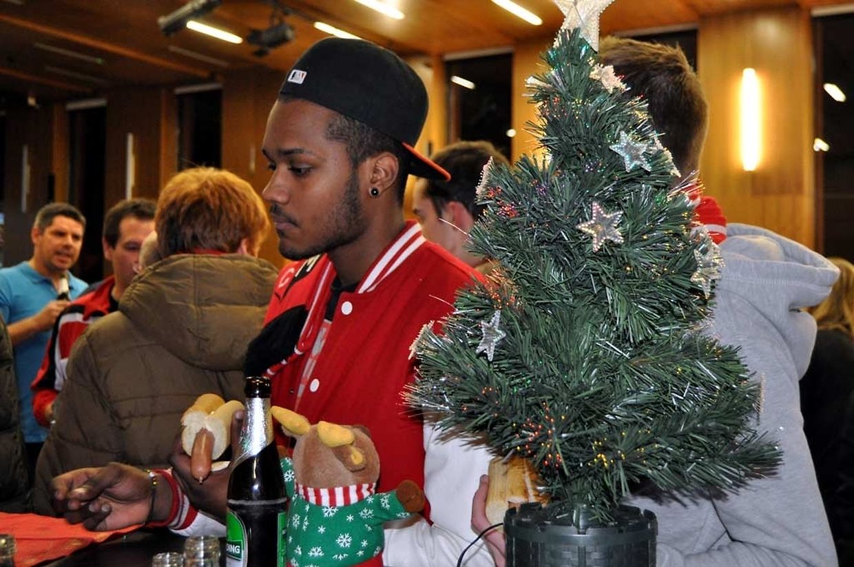 Et war eng Chrëschtfeier an engem neie Konzept. Net méi wéi all Joer an eisem gemittlechem FCM Club House deen fir esou Geleeënheeten e wéineg ze kleng ass, mee emol eng Kéier auswäerts, an zwar an deem schéinen neie Kulturzentrum "Beim Nëssert" zu Biergem. Hei war vill Plaz an esou konnt och jidderee gläichzäiteg of d'Feier kommen. An esou war de Sall de Freideg den Owend ganz gutt besat. Vläischt wollt och nach jiddereen nach vum Owend profitéieren. Maya sei Schuld! Et war jo den 21/12/2012.