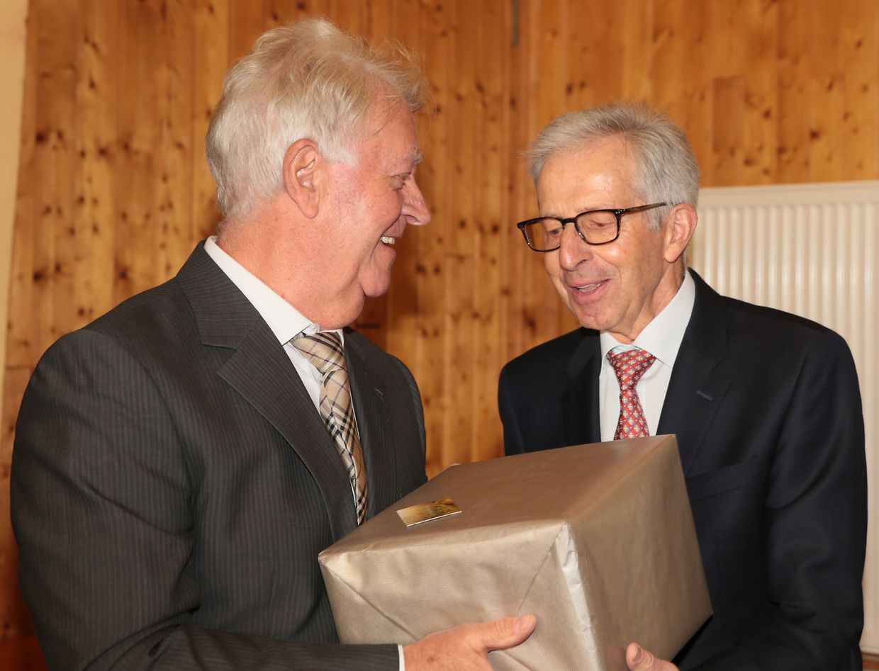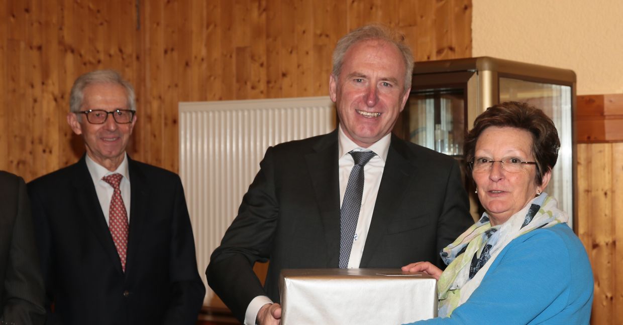 Von der ehemaligen Kirchenfabrik Bergem – Steinbrücken -Wickringen bekamen Larosch Josette für 6 Jahre Zugehörigkeit und Wolff Robert für 30 Jahre Dienste als Schatzmeiser ein Geschenk.