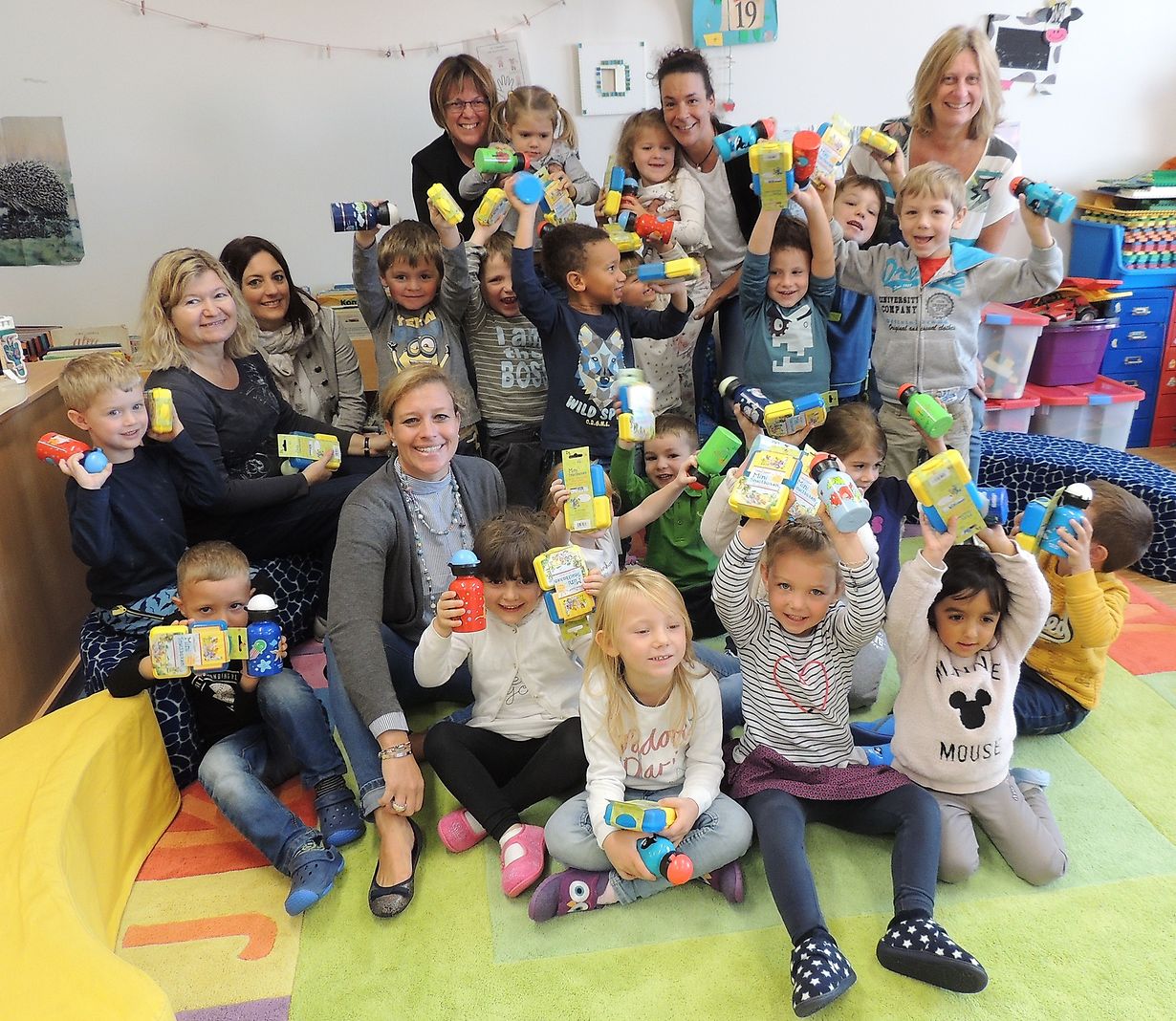 Wie bereits in den vergangenen Jahren bekamen am 20.09.2017 die Vorschulkinder der Gemeinde eine wiederbefüllbare Getränkeflasche und eine Brotdose geschenkt. Der Sinn dieser Aktion besteht darin, die Kinder - und somit ebenfalls die Eltern - zu sensibilisieren, von vorgefertigten Pausensnacks Abstand zu nehmen. Man ernährt sich nicht nur gesünder, sondern man vermeidet auch eine Menge Verpackungsmüll. Umso wichtiger ist es, frühzeitig die richtigen Reflexe einzuüben. Aus Erfahrung glauben wir davon ausgehen zu können, oder besser: wissen wir, dass die Kinder sehr regen Gebrauch von der Getränkeflasche und der Brotdose machen.