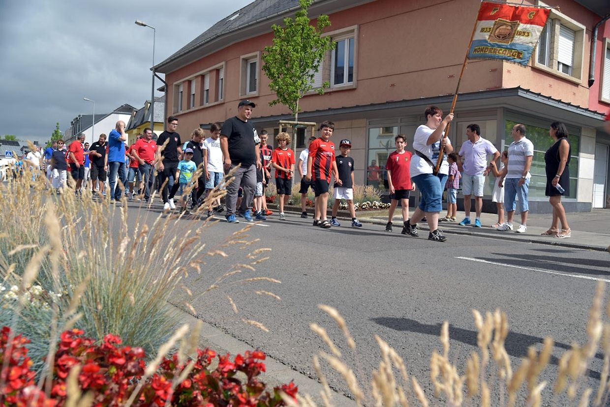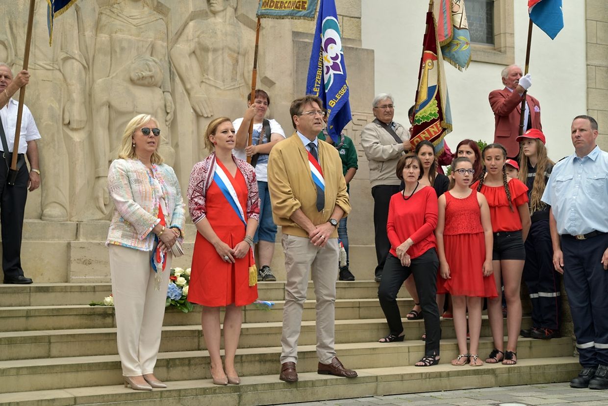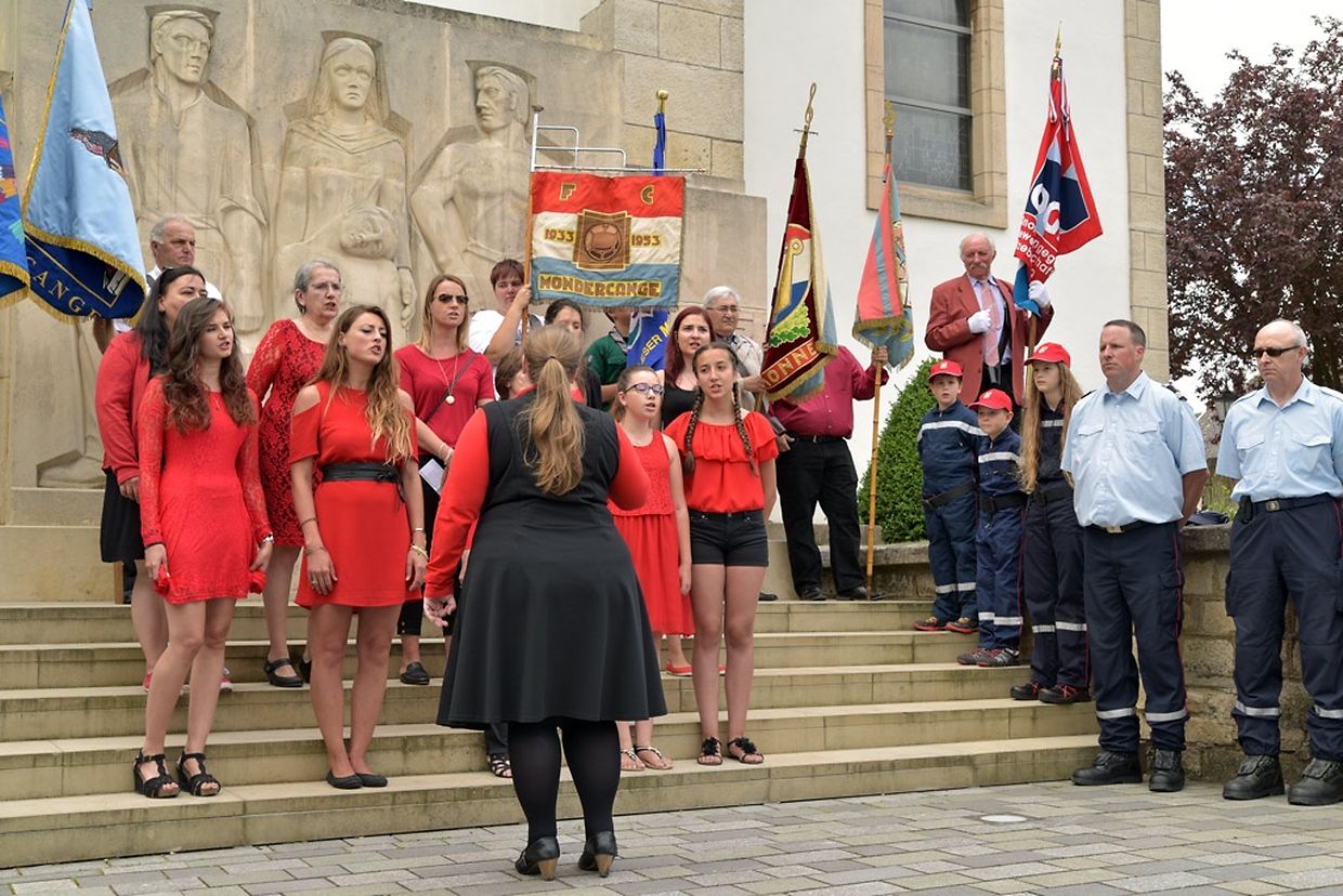 Um Freide Moien, hunn déi verschidde Veräiner aus der Monnerecher Gemeng um Cortège vum nationalen Feierdag deel geholl. Den FC Monnerech war och dobäi. Duerno ass eng Gerbe beim Monuments aux Morts néier gelooss ginn an dann huet d'Buergermeeschtesch Christine Schweich déi traditionell Ried gehale befiert déi verdéngschtvoll Matbierger geéiert gi sinn. Um Schluss ass et nach en Éierewäi ginn, spendéiert vun der Gemeng.