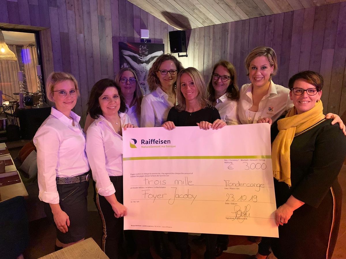 Ladies Circle 2 huet den 23.Oktober konnten mat Freed am Ganzen 9000 EUR spenden. Am Kader vun enger Soirée am Restaurant NAGA waren sie houfreg den Gewënn vun 6000 EUR am "Famillenduell" op RTL integral un d'ONGD vun der FNEL ze iwwerreeschen Doriwwer eraus sin 3000 EUR un den Foyer Jacoby gaangen deen sech mat vill Engagement em Kanner kemmert dei an enger schwiereger Situatioun sin.
