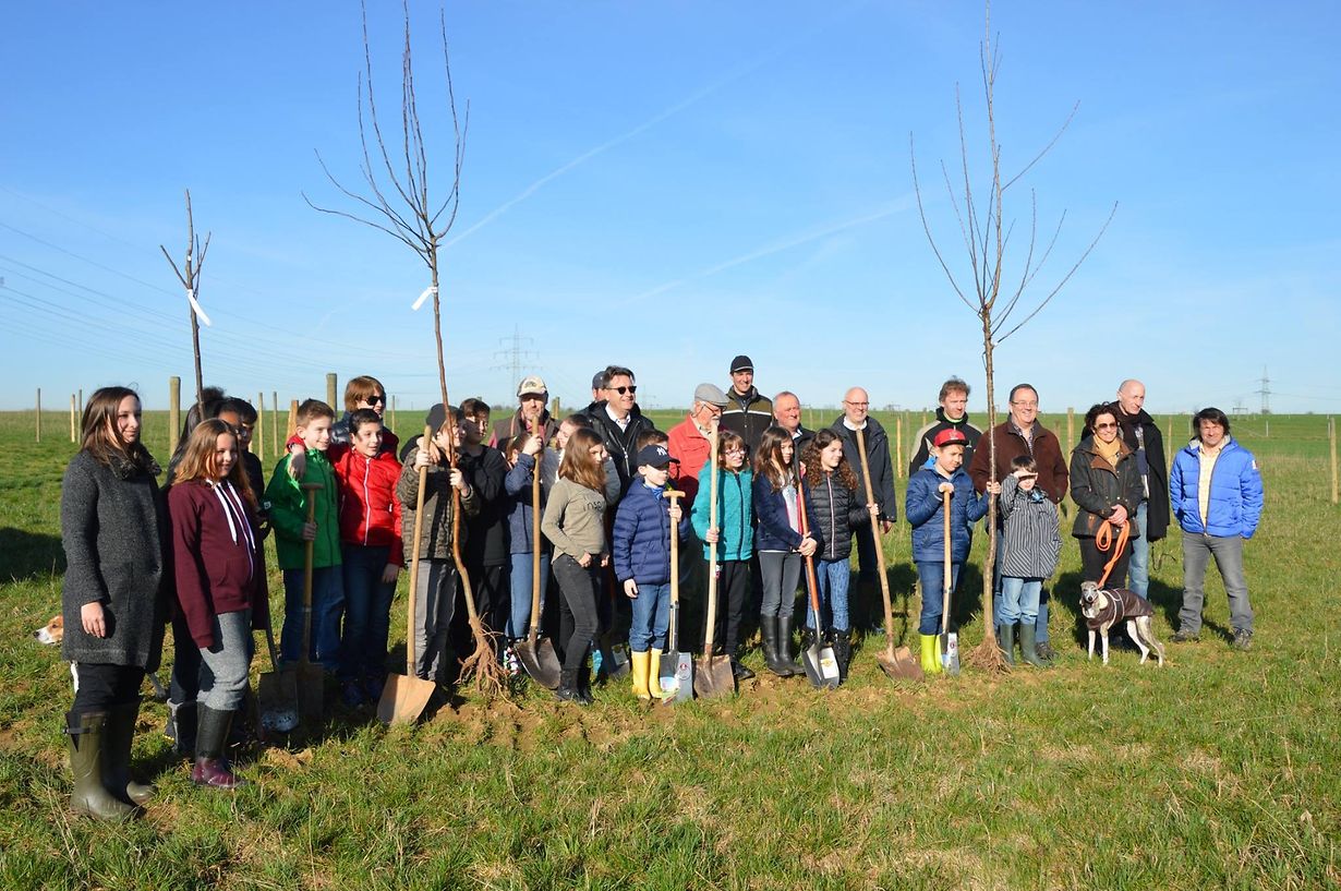In Bergem, wurde am 27. März im Rahmen einer Pressekonferenz eine neue Streuobstwiese gepflanzt. Eine Klasse des 5. Schuljahres aus Pontpierre ging dabei tatkräftig mit zur Hand. In Anwesenheit von SICONA-Präsident Roby Biwer, Jean Orlando, Schöffe der Gemeinde Mondercange, Förster Claude Assel, der Familie Kieffer als Besitzer und Mitgliedern der Umweltkommission und des Service écologique der Gemeinde wurden 20 Hochstammobstbäume zusammen mit den begeisterten Kindern gepflanzt.