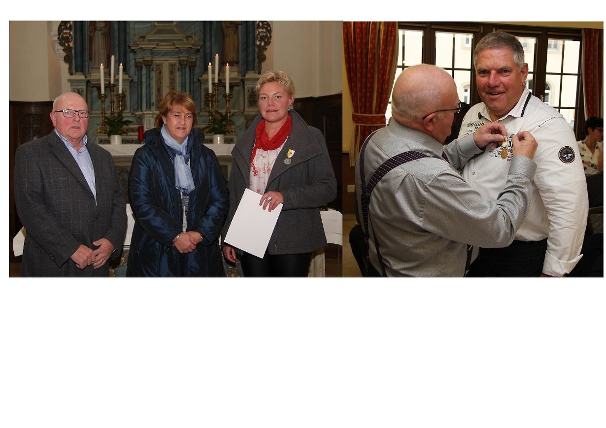 Die Silbermedaille für 20 Jahre Dienst für die Dirigentin Christiane Schaul, sowie die Medaille in Gold für 31 Jahre im Dienst an Patrick Jemmning.