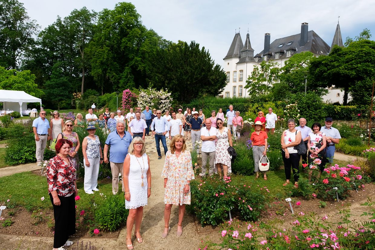Sechs Jahre lang stand Mireille Steil an der Spitze der „Lëtzebuerger Rousefrënn“. Nachdem sie vor Kurzem dieses Amt aufgegeben hatte, wurde sie jetzt auf eine besondere Weise ausgezeichnet: In der „Roseraie Château de Munsbach“ im Park des Schlosses Münsbach tauften die „Rousefrënn“ ihr zu Ehren die Rose „Mim’s Rose“. An der Feier nahmen Freunde und Bekannte der früheren Präsidentin teil.