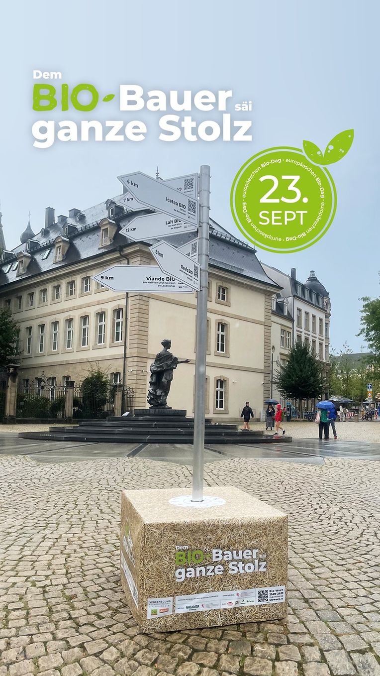Zusätzlich wird die BIO-Woch von einer Pfeil-Schilder-Aktion im ganzen Land begleitet. Verteilt auf 12 Gemeinden weisen an zentralen Plätzen Hinweis-Pfeil-Schilder den Weg zum nächstgelegenen Bioproduzenten: Bio gibt es nämlich direkt in unserer Nachbarschaft, man weiß es nur leider oft nicht. Genau hier setzt die Pfeil-Schilder-Aktion an, zeigt den Weg und gibt über einen QR-Code weitere Informationen: „Bio vun heiheem an Denger Noperschaft“