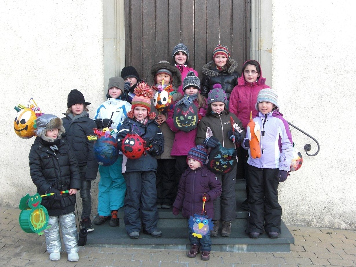 Och dest Joer hun di Menjecker Kuebe-Kanner sech bei der Kierch getraff fir zesummen liichten ze gon. Och wann et äiseg kaal war, haaten si hir Freed a si vun Haus zu Haus gezun. Dono hu si sech rem am Kueb getraff fir hir Onmass vu Schneekegkeeten ze deelen a sech bei waarmen Choky an waarme Wirschtercher rem opzewierem.