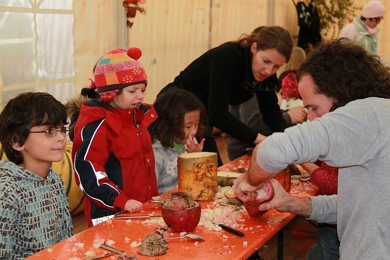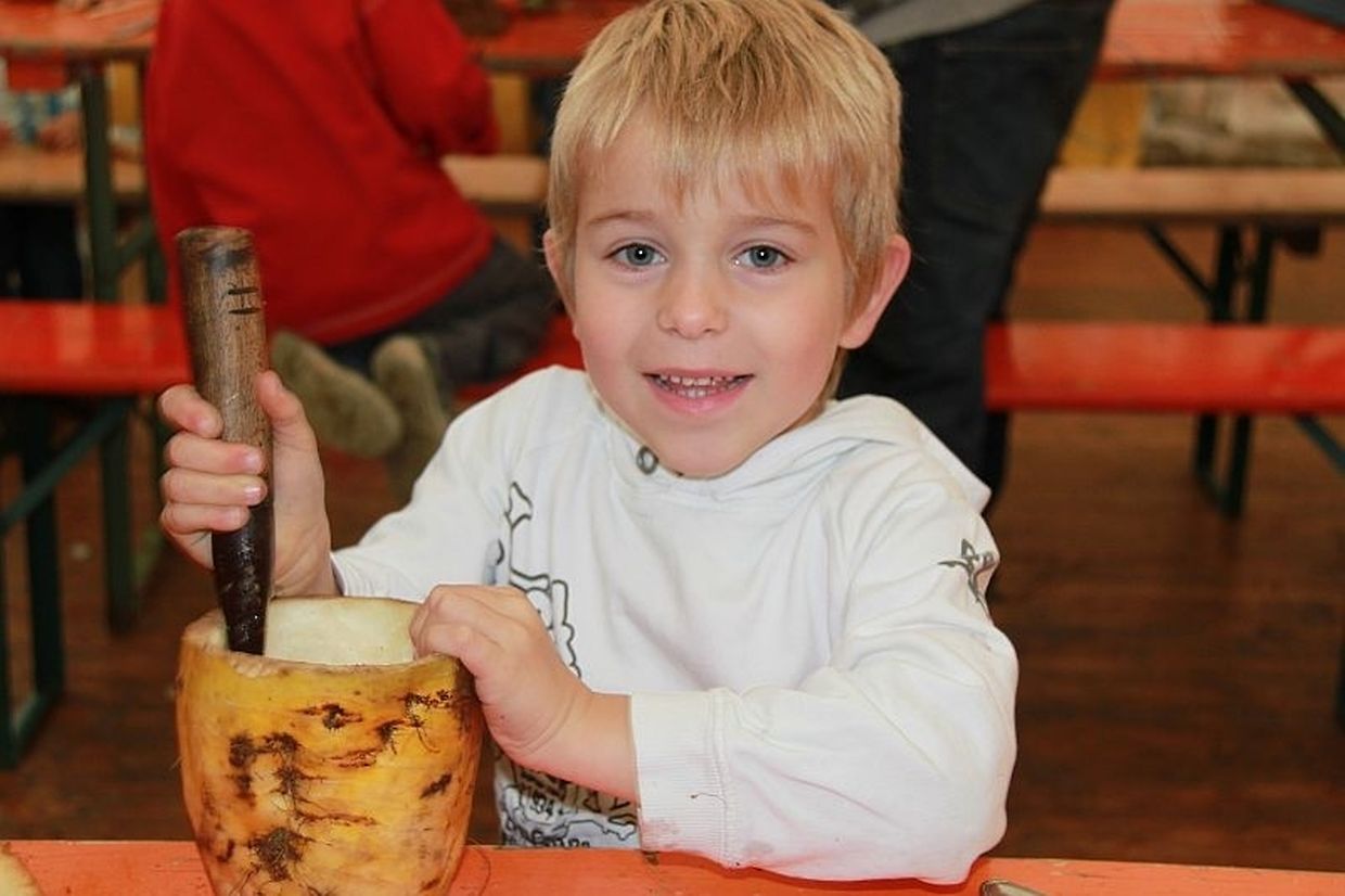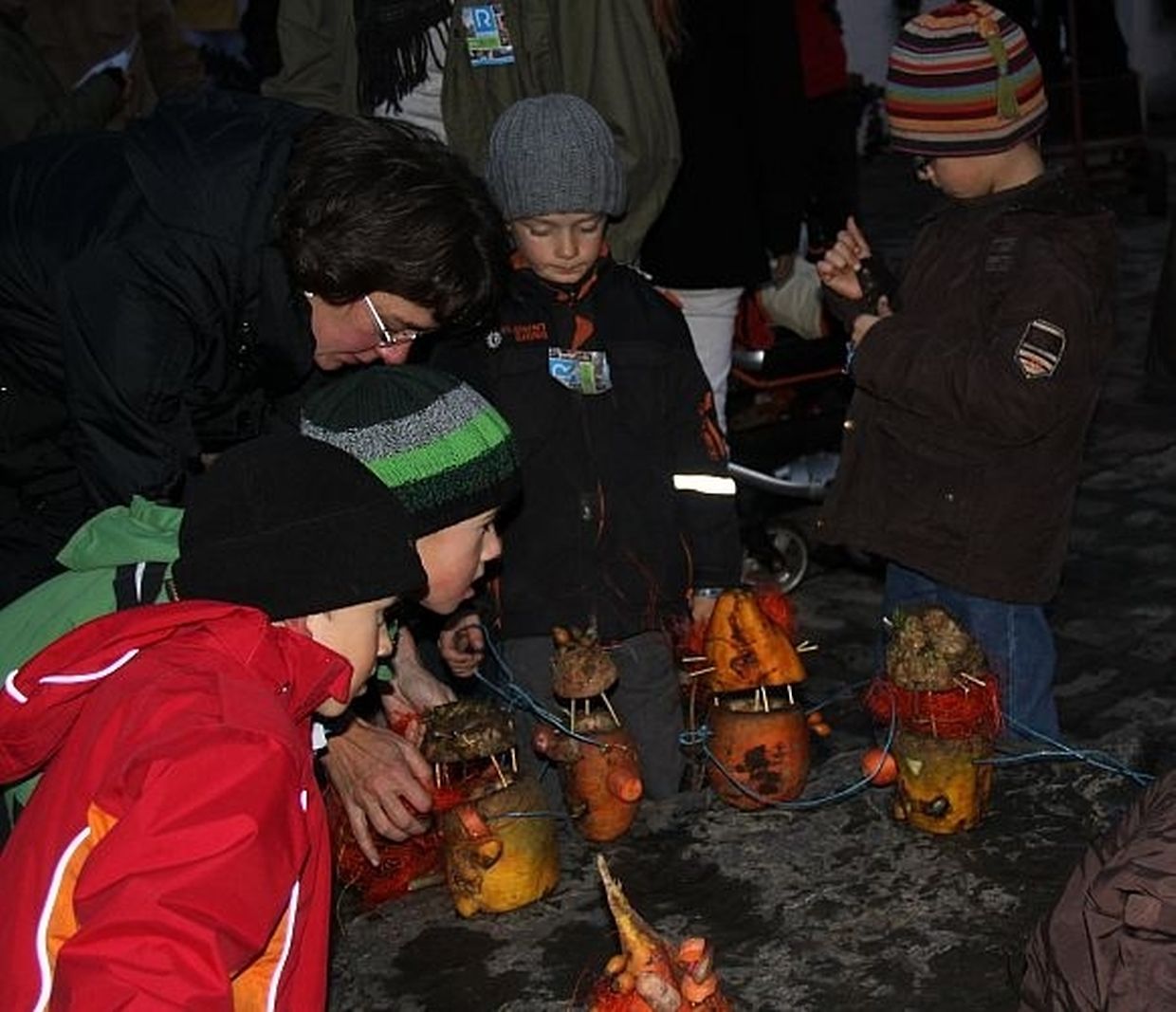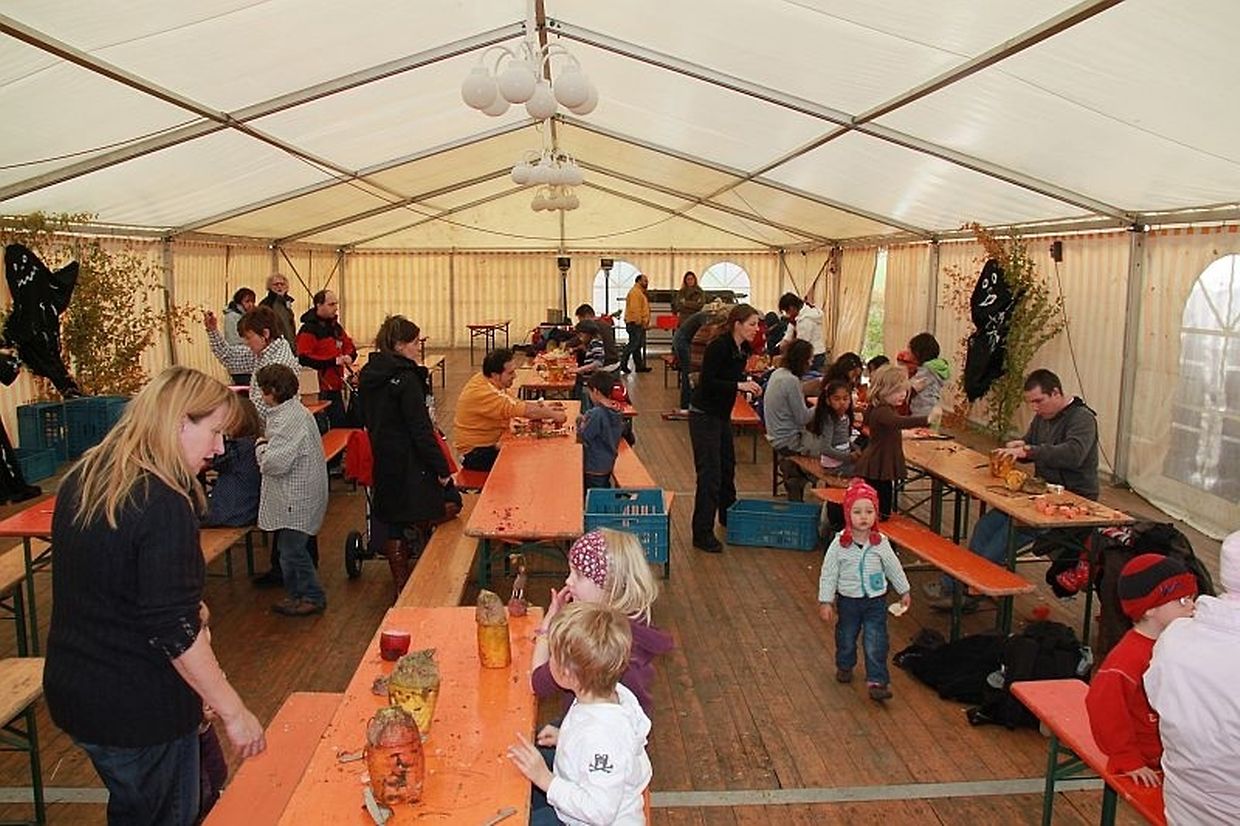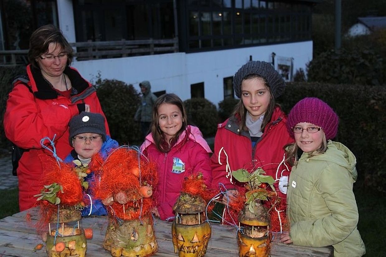 Nach alter Tradition wurden am Samstag in der „Robbesscheier“ in Munzen wieder eifrig Runkelrüben zu gruseligen Fratzen ausgehöhlt und mit einer kleinen Kerze bestückt, die das „Trauliicht“ so von innen beleuchtete.