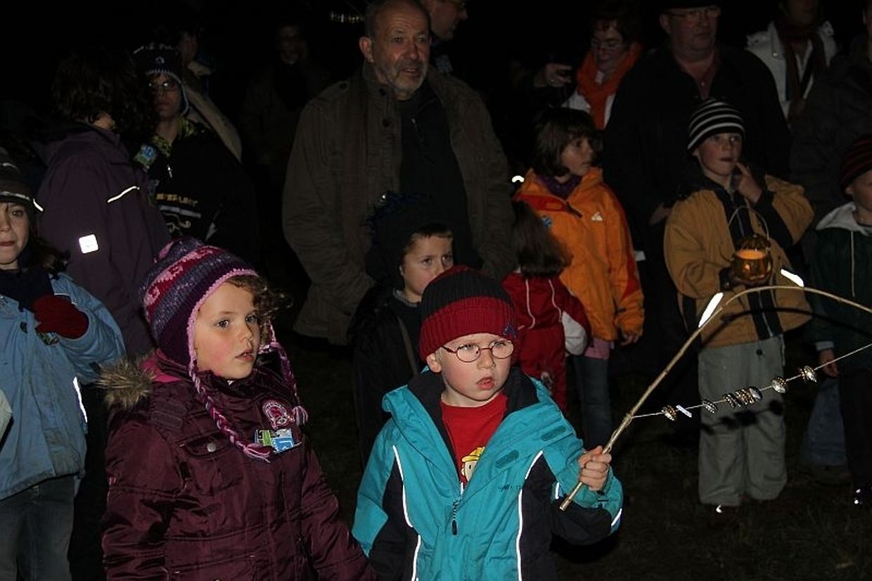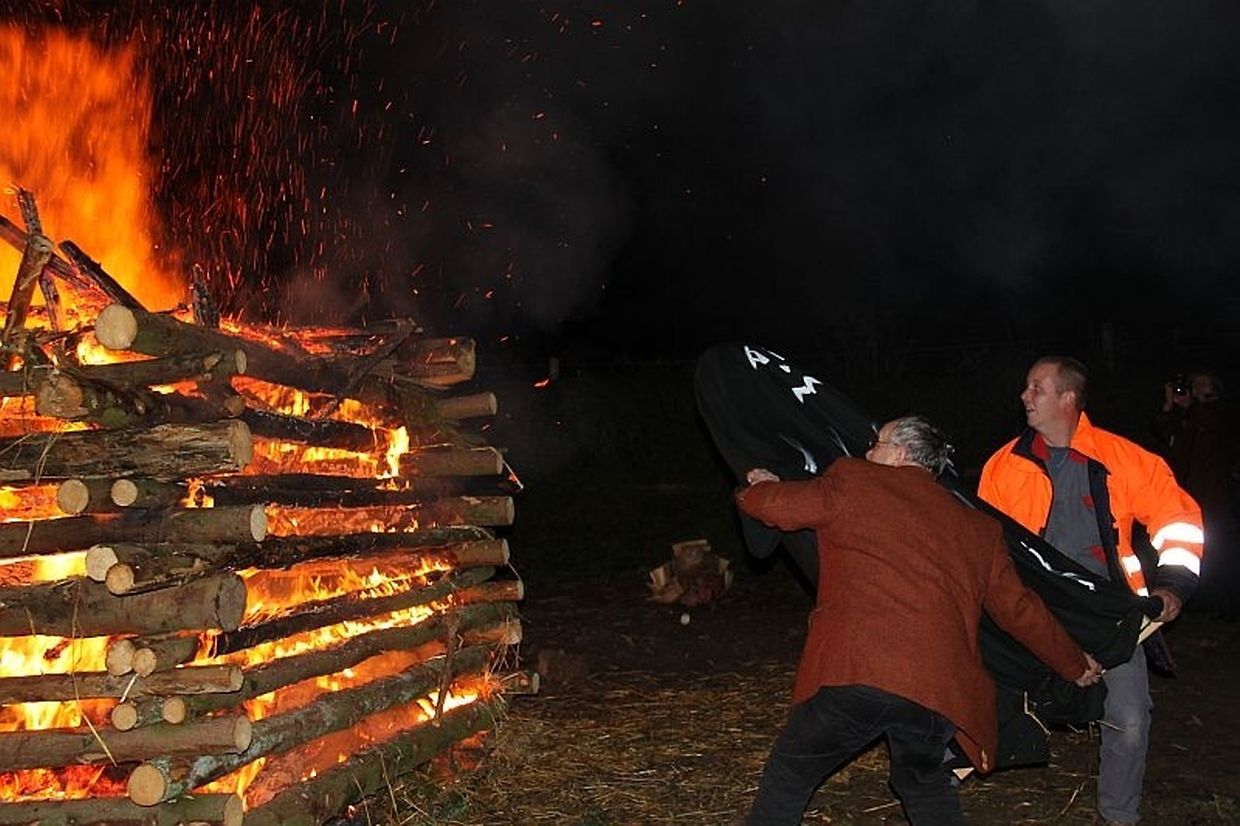 Nach Einbruch der Dunkelheit versammelte sich Großund Klein vor der „Robbesscheier“, wo die „Trauliichter“ angezündet wurden . Danach ging es mit Gesang vom „groussen Hexemeeschter“ zum Gerichtsplatz , wo dem Hexemeeschter der Prozess gemacht wurde.