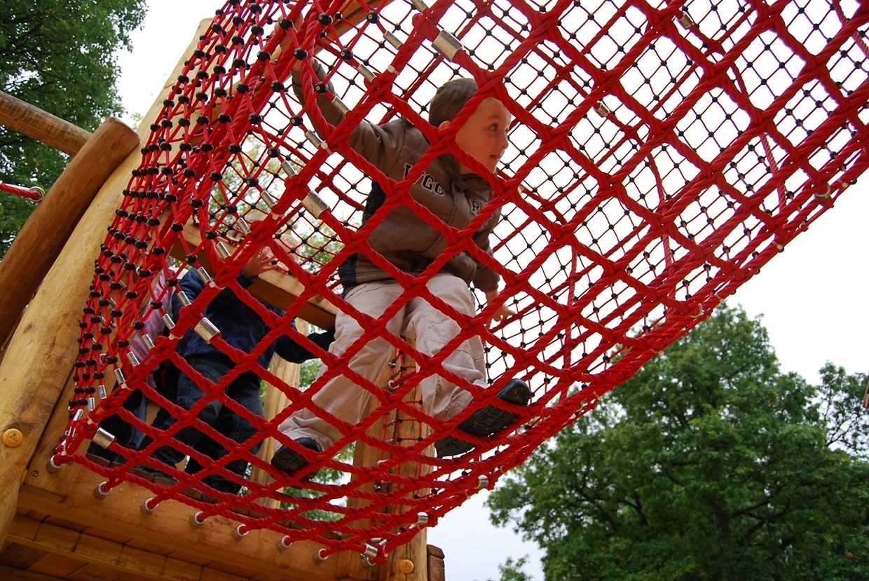 Das vom Atelier Ligna entworfene Konzept bietet neben Spaß und Spiel viel Potenzial zum Lernen und Lehren für Klein und Groß. Neben zahlreichen Kinderspielen, wie Rutschen, Kletterpfählen,-gerüsten, und -labyrinthen, Hängematten tummelt sich auch allerlei ,,Getier" in der Ecke, die für die Kleinen vorgesehen ist: Federwippgeräte in Form von Schafen oder Pferden.