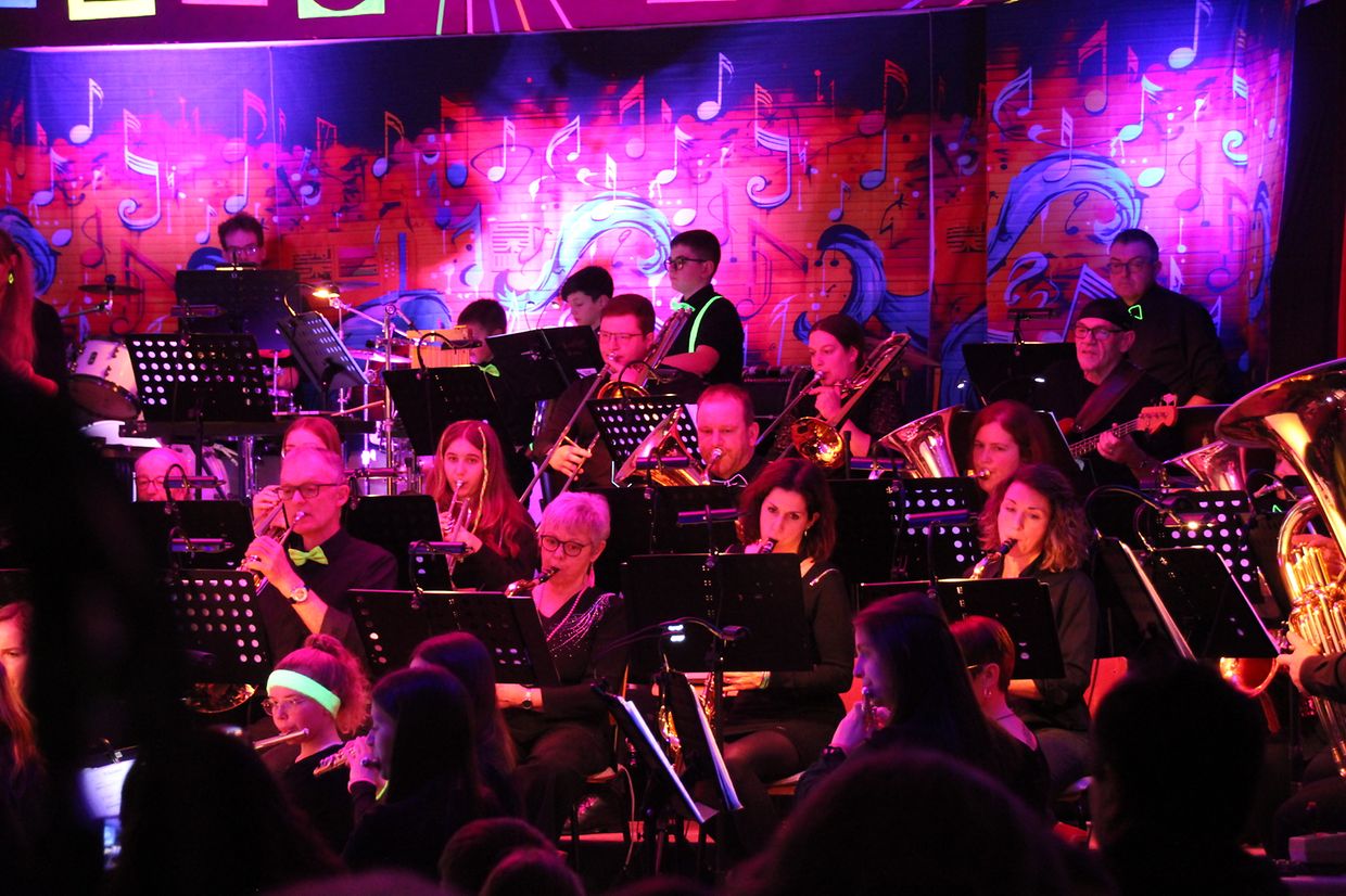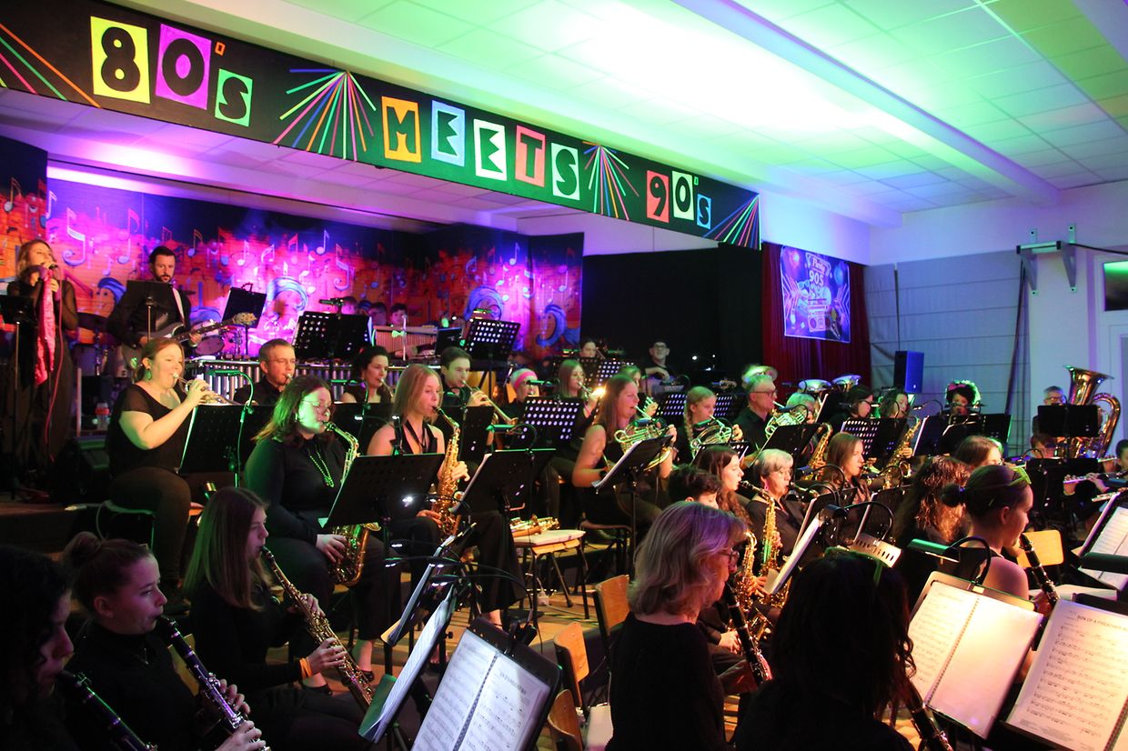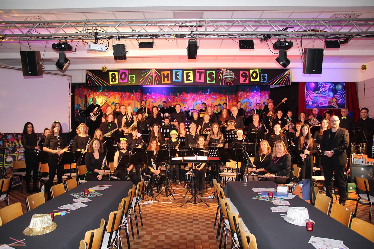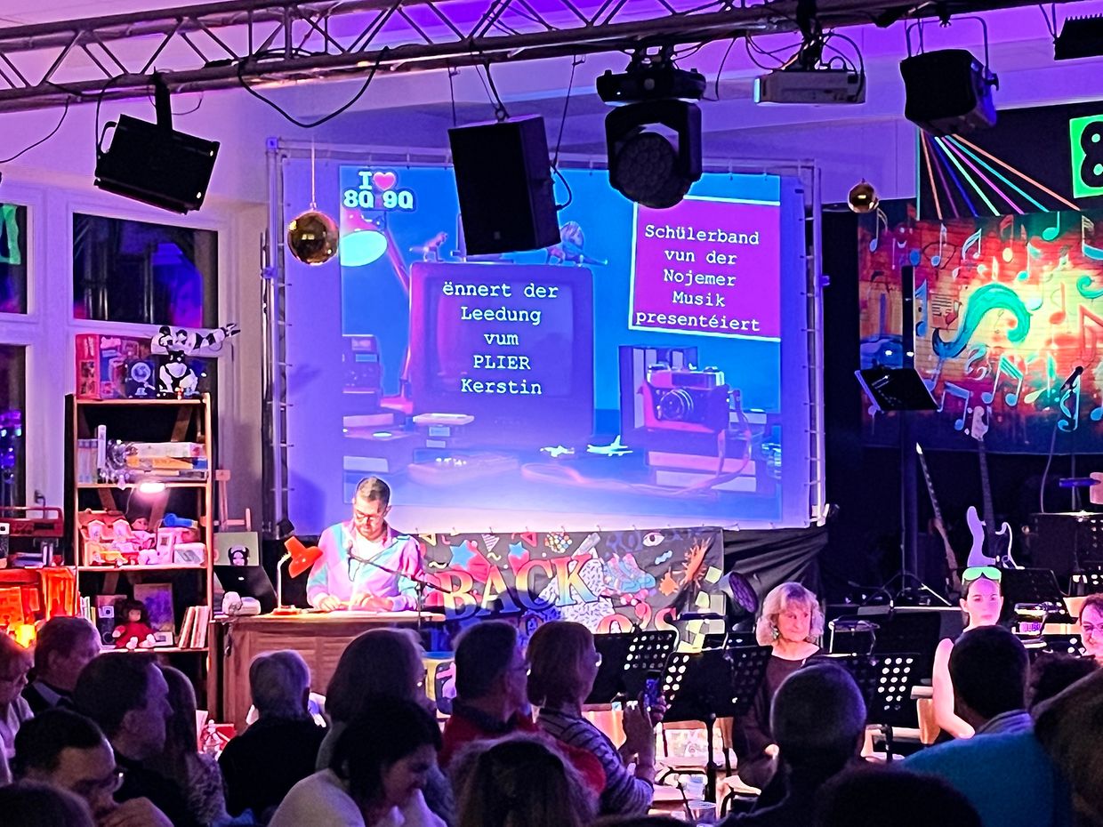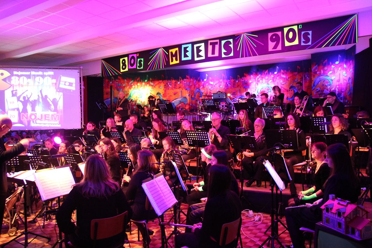 Vor wenigen Tagen hatte die Nojemer Musik zum Winterkonzert unter dem Motto "80s meets 90s" eingeladen. In dem, passend zum Thema geschmückten Festsaal in Nagem, wurden die Musikliebhaber keinesfals enttäuscht und ihnen wurde ein abwechslungsreiches Programm geboten, ein echter Rückblick in die Kindheit und Jugendzeit vieler Zuschauer. Unter der Leitung von Fränz Breger wussten die Musikanten in allen Registern zu überzeugen. Den Auftakt des gelungenen Abends machte die Schülerband unter der Leitung von Kerstin Plier mit den Musikstücken "Danger Zone" und "Livin' on a prayer". Danach übernahm das groβe Orchester und spielte im ersten Teil des Programms Werke wie "Police Academy March", "80 Kult(tour)2" und "Super Marion Bros" . Eine kurze Pause gönnten sich die Musikanten während die Gruppe Radiostation eine tolle Einlage hinlegte. Anschließend spielten unsere Musikanten in Zusammenarbeit mit der Gruppe Radiostation den Titel "Son of a preacher man".