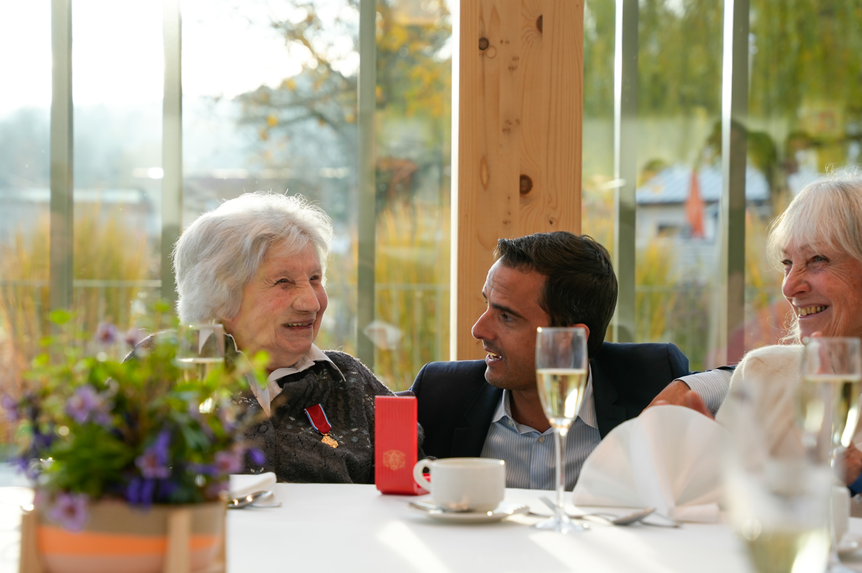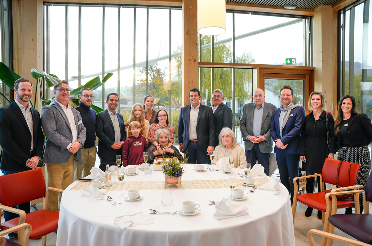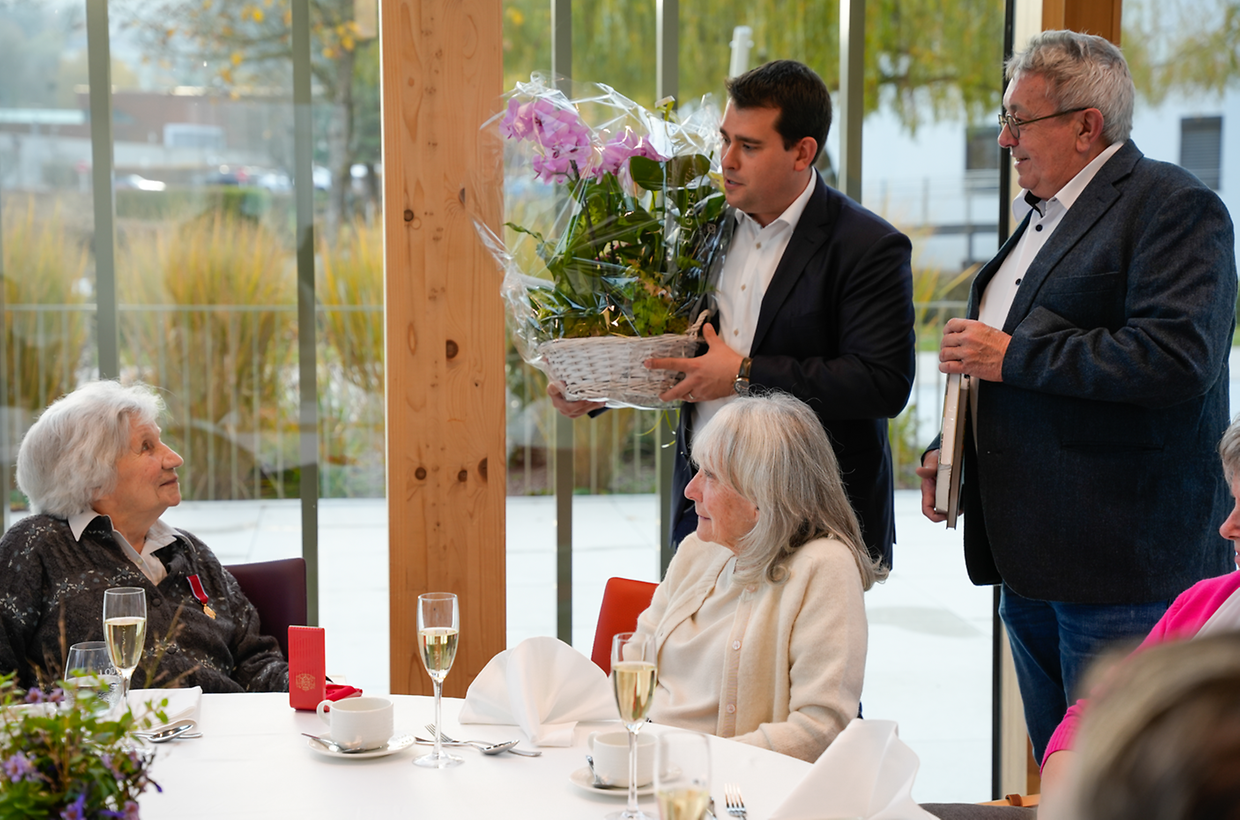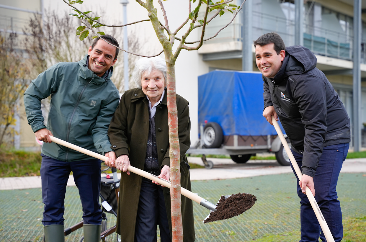 100 Joer, dat muss gefeiert ginn! Fir de ronne Gebuertsdag vun der Madamm Dostert-Dondelinger huet eise Schäfferot et sech net huele gelooss, fir dem Gebuertsdagskand e Besuch am CIPA ,,Gréngewald'' Niederanven ofzestatten. A Presenz vum Familljeminister, Max Hahn, gouf den 10. November feierlech op d'Madamm Dostert-Dondelinger ugestouss!