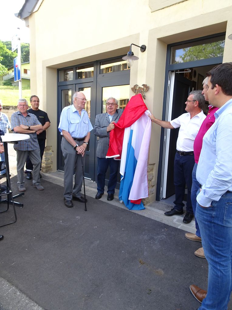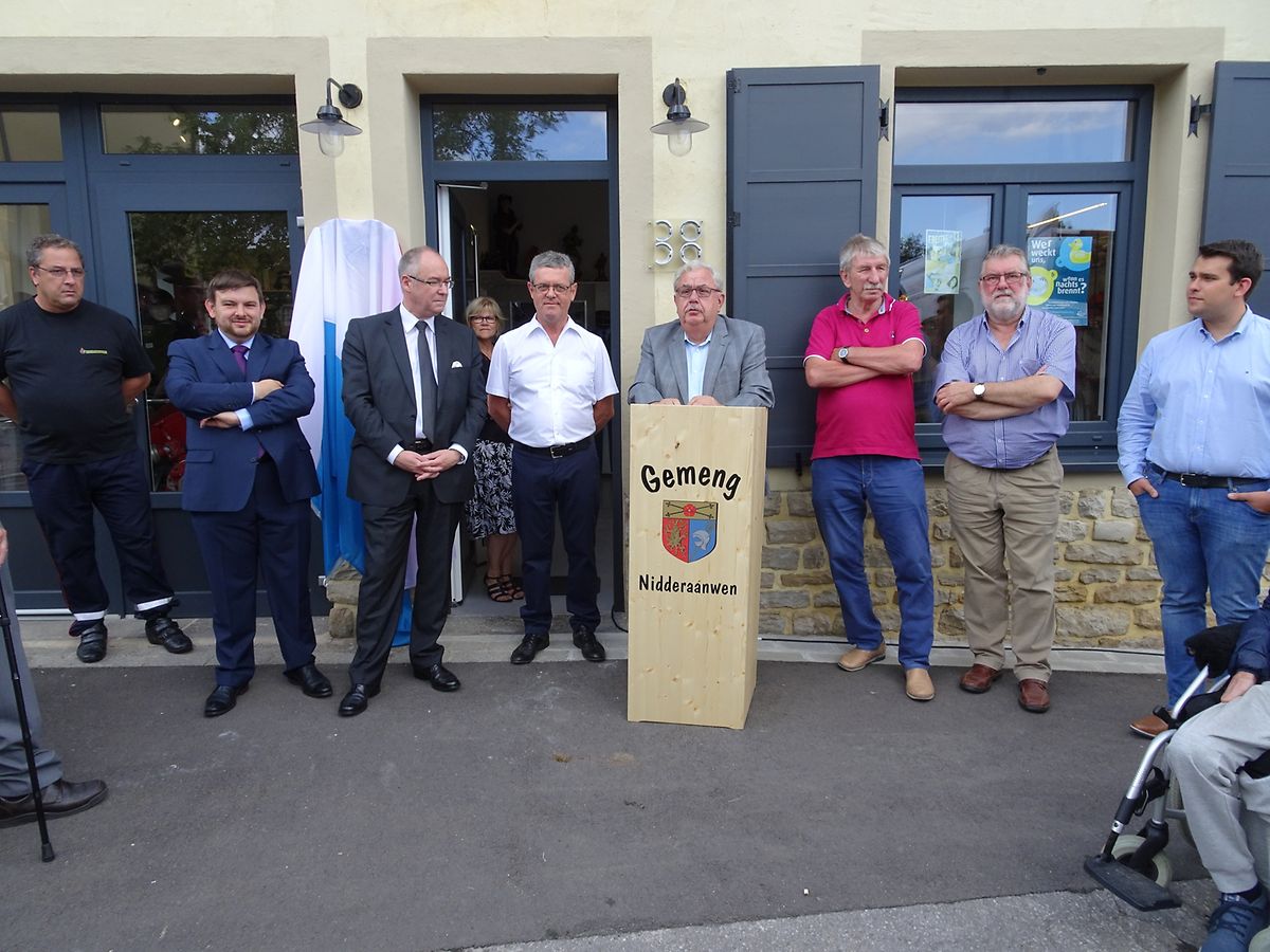 Nachdem Bürgermeister Raymond Weydert im Beisein der Kollegen des Schöffen und Gemeinderates die Geschichte des Gebäudes hatte Revue passieren lassen ( von der Molkerei über den Feuerwehrbau Senningen bis zum Unterstand des Fischereivereins Neibaach und anschließender Nichtbenutzung ) lobte er diese gemeinnützige Initiative einer permanenten Ausstellung mit Unterrichtscharakter.