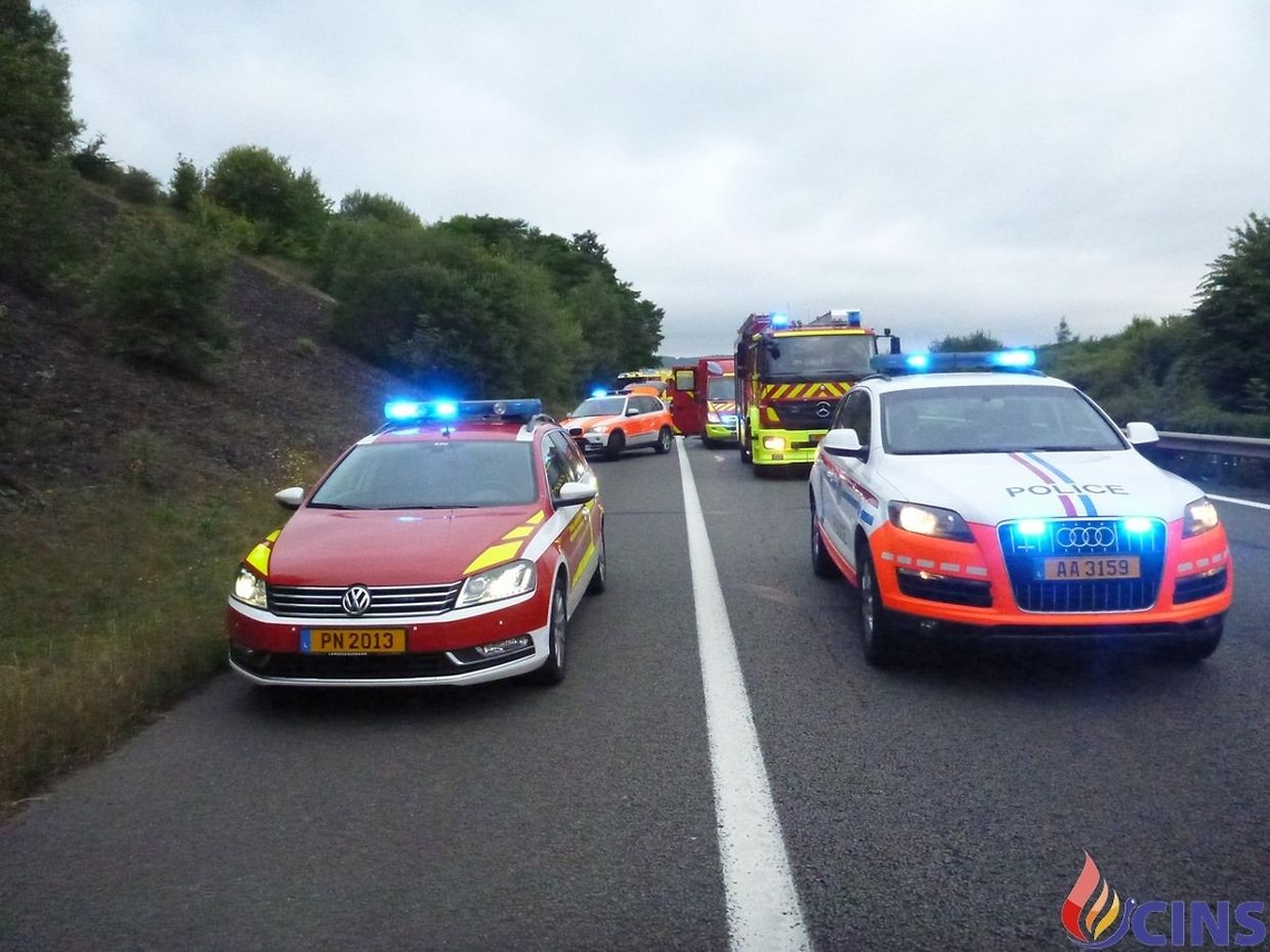 Vor Ort waren die Freiwillige Feuerwehr der "CI Niederanven-Schuttrange", die Berufsfeuerwehr der Stadt Luxemburg, der SAMU aus Luxemburg, die Straßenbauverwaltung sowie die Autobahnpolizei.
