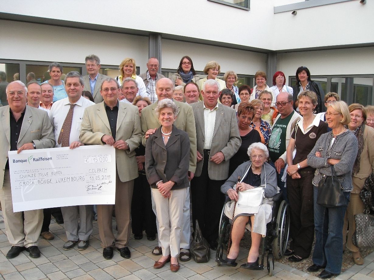 Monsieur Jacques HANSEN a finalement pris la parole pour nous expliquer brièvement le fonctionnement et les principales activités de la Croix Rouge Luxembourgeoise. La partie officielle de l'assemblée s'est terminée par une prise de photo et la remise d'un chèque de 15.000 € à Monsieur Jacques Hansen. Après ceci le comité a offert une agape pour remercier les participants des sections, qui nous ont été fidèles au long de toutes les années précédentes.