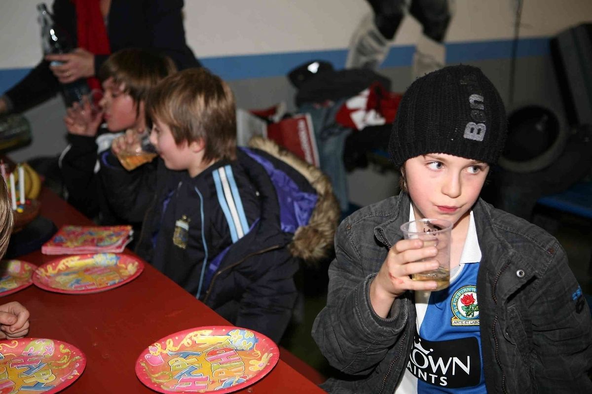 Genau op den Dag huet de Felix den 28. Dezember säin 10. Gebuertsdag gefeiert. Dofir hat hien e puer vun senge gudde Frënn op e flott Fest invitéiert. Um Programm stunge Fussballspillen an duerno eppes Séisses fir Läiw a Séil ze stäerken. Fir déi, déi sech um Terrain iwerustrengt haaten, gouf et esou guer Relaxatioun um automatesche Massagestull (cf Foto). "Et woar e coole Nometteg", sooten se all zum Schluss, ewéi et flott am Auto duerch neie Schnéi heem goung.
