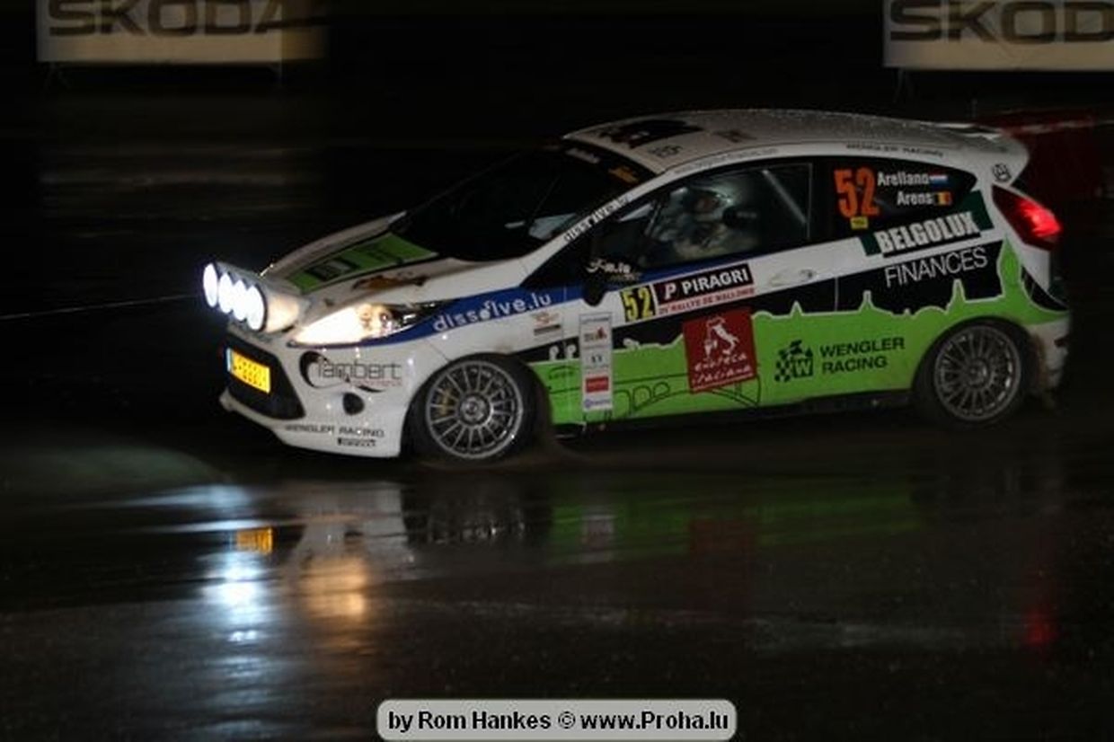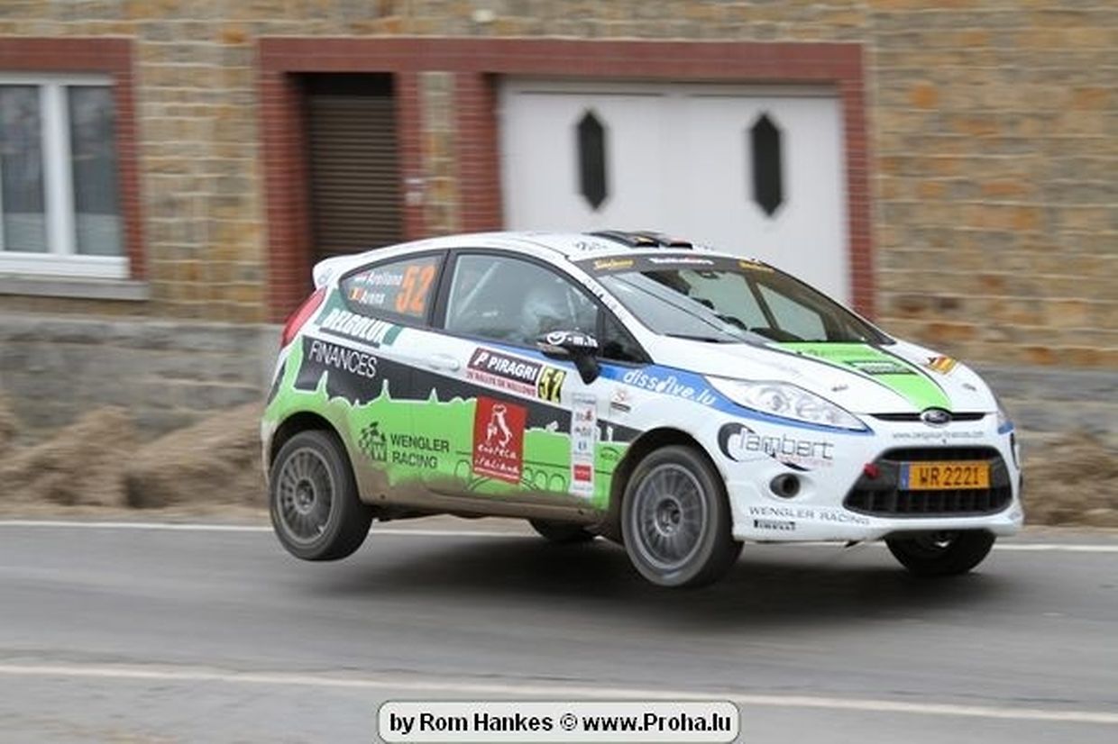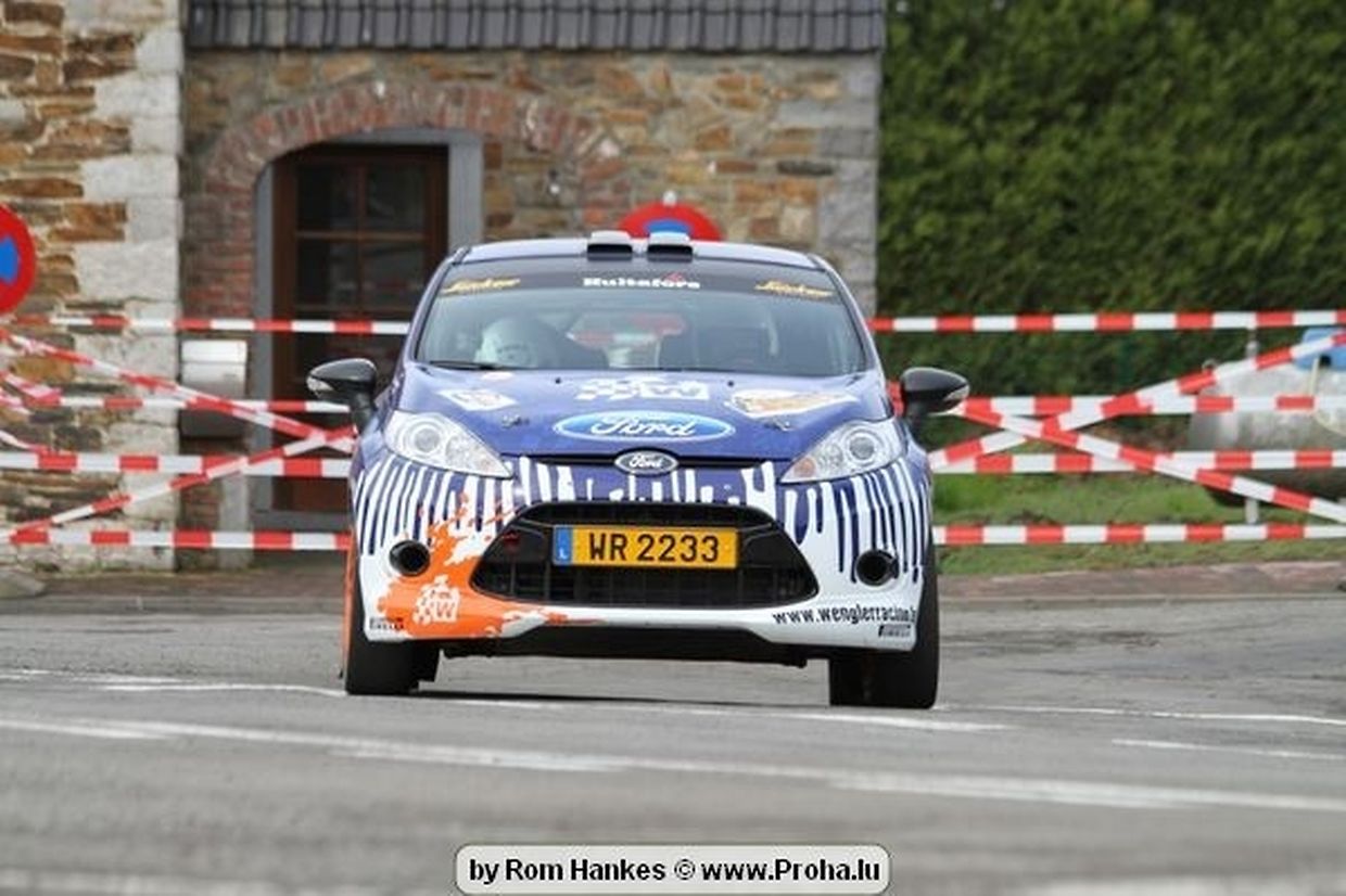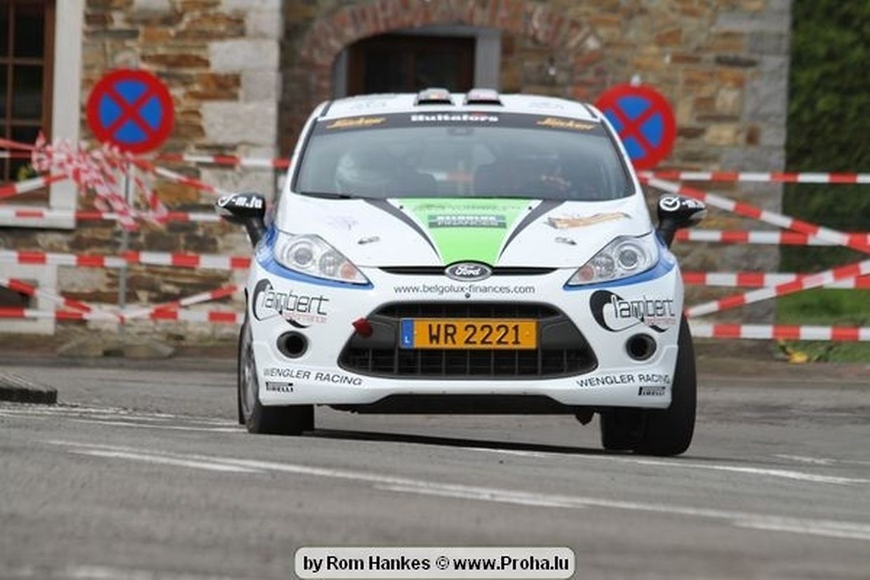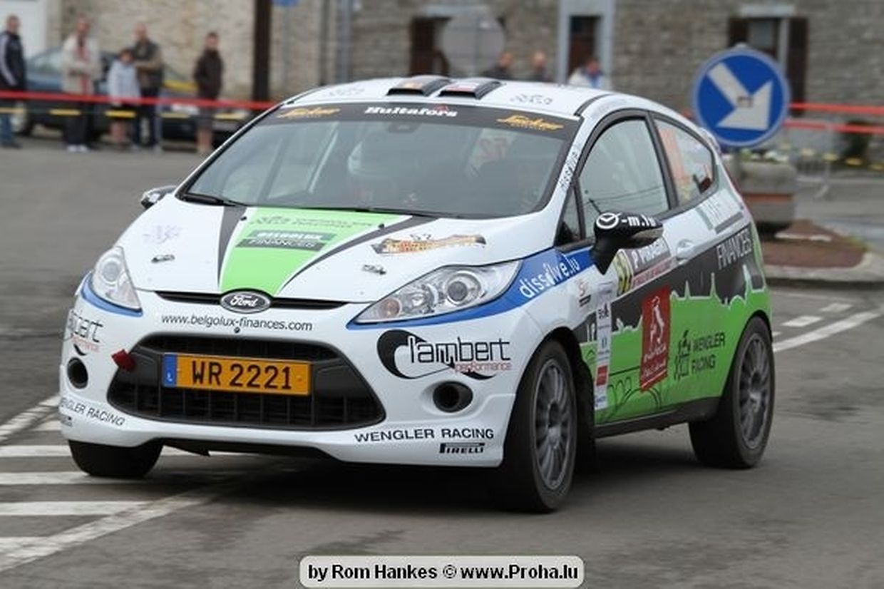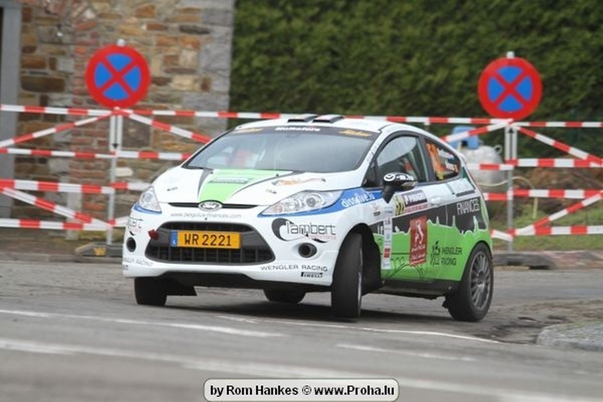 Den Ford Fiesta Trophy Gewenner Bob Kellen mam Nathalie Hoffmann um Ford Fiesta R2 aus dem Wengler Racing Team, mat aus sengem Team awer och den Hugo Arellano mam neien Co - Pilot Daniel Arens och um Ford Fiesta R2.