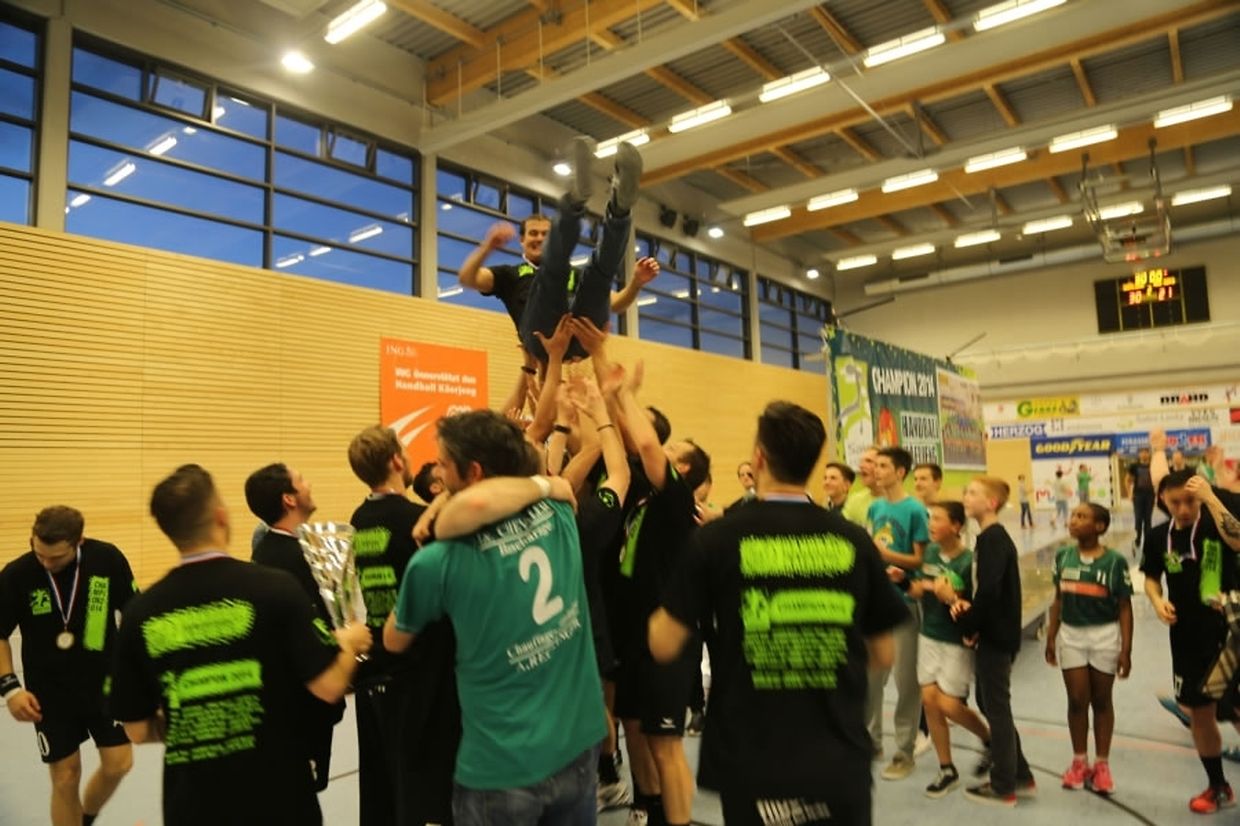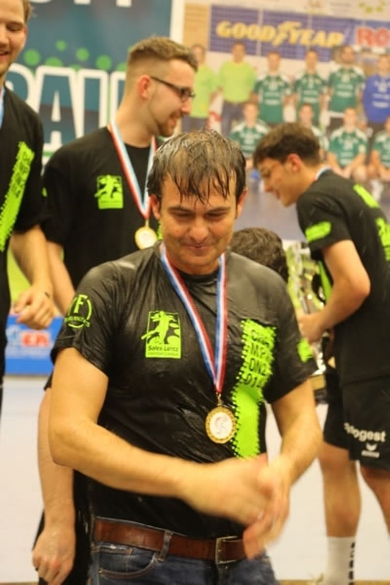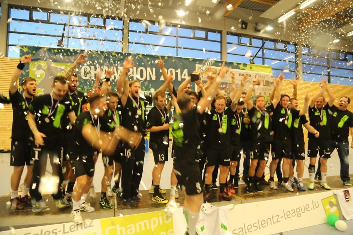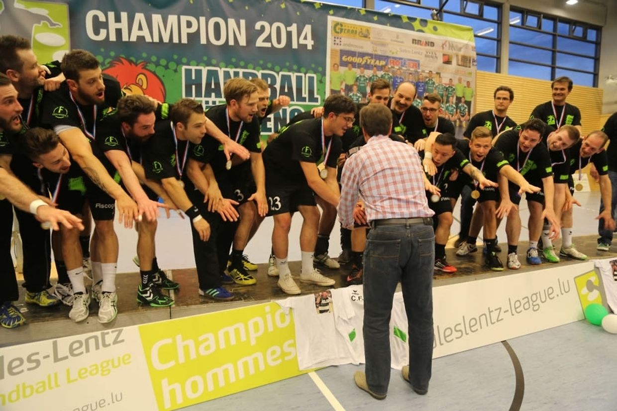 Direkt vun Ufank un hunn déi Gréng-Wäiss virun enger impressionanter Kuliss vun 500 bis 600 Zuschauer gewise wien Här am Käerjenger Dribbel wär. Iwwer 7-1 no 13 Minutte goung et schonns mat enger Avance vu 6 Goaler (13-7) an d'Paus. An der 2. Halschent hunn d'Jonge vum "Meeschter Coach" aus Italien, dem Riccardo Trillini, näischt méi ubrenne gelooss. Si hunn hire Virsprong weider ausgebaut a mat 30-21 de Mätch gewonn. Domat war deen éischten Titel bei den Hären fir den Handball, awer och deen éischten Titel fir eng Hären Equipe an enger kollektiver Sportaart an der Gemeng Käerjeng gewonnen.