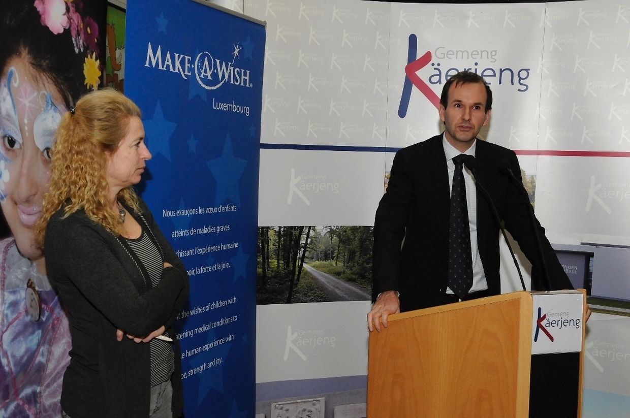 Schöffin Josée-Anne Siebenaler-Thill war es vorbehalten einen Scheck in Höhe von 3.500 € an Sylvie de Matos und Raphaël Loschetter von der Organisation "Make a wish", sowie von 1.075 € an Joëlle Drees und Laurent Benassutti von "Île aux Clowns" zu überreichen.