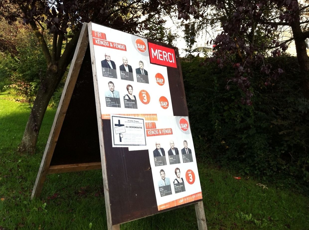 "... plötzlich und unerwartet von uns genommen, die Demokratie". Mit diesen Worten wird die Traueranzeige in der Fusionsgemeinde Niederkerschen-Küntzig eingeleitet, die jemand auf die verbliebenen Wahlplakate der Parteien auf dem Gebiet der Gemeinde geklebt hat. Nach der Allianz von CSV-BIGK mit Déi Gréng ist sogar ein Trauerzug einberufen worden. Dieser hat am 17 Oktober statt gefunden.