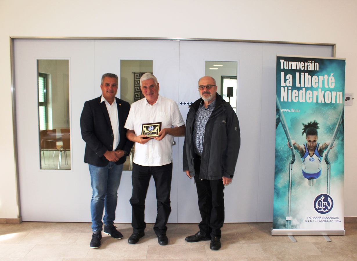 Darüber hinaus hat sich Bariviera mit der Organisation von Großveranstaltungen wie der Fête de la Joie, Turn- und Sportfesten, LLN-Open, Turngalas oder dem landesweit bekannten Karnevalsball „Alles am Gelli“ einen Namen gemacht. Seine Arbeitsweise ist stets von großer Sorgfalt und Zuverlässigkeit geprägt. „Claude, du bass ee ganz Groussen“, rief einer der Turner dem Niederkorner Frontmann zu. Dem ist nichts hinzuzufügen. Claude Bariviera ist schon jetzt ein Teil der Geschichte des Turnvereins. Für sein ehrenamtliches Engagement, seinen unermüdlichen Einsatz und seine vorbildliche Einstellung zum Turnsport wurde der 71-Jährige im Beisein des Ehrenpräsidenten Roby Rollinger und des neuen Präsidenten Christian Pierret von der FLGym mit einer Laudatio, minutenlangem Applaus und einem passenden Geschenk geehrt.