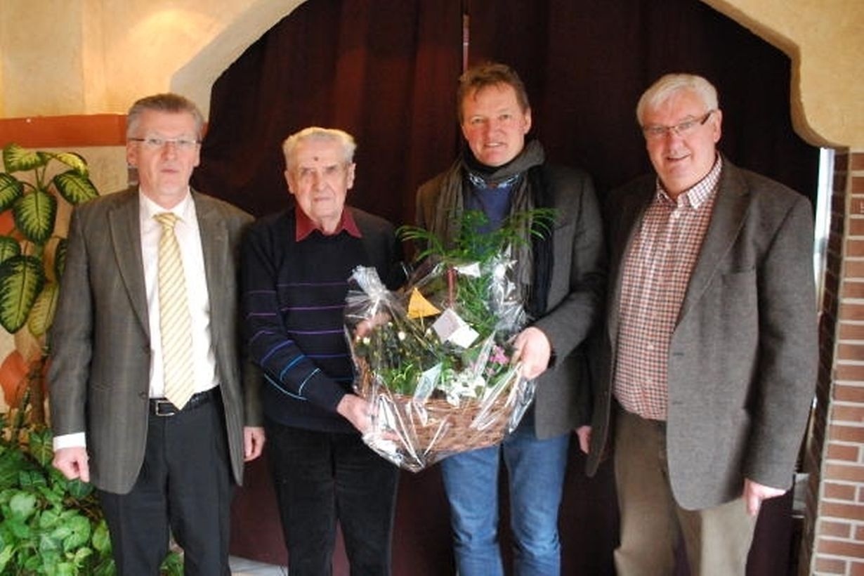 Zum 90. Wiegenfest überbrachten Bürgermeister Frank Arndt und die Schöffen Pierre Koppes und Raymond Shinn dem Jubilar mit ihren Glückwünschen ein Blumengesteck seitens der Gemeindeverwaltung Wiltz. (N.M.)