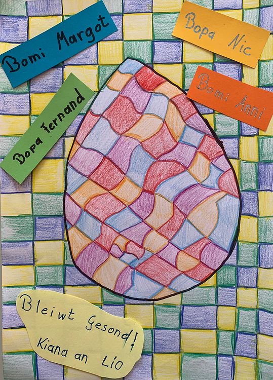 Nocher Eine Zeichnung für die Grosseltern Martine Steichen Veröffentlicht am Dienstag, 7. April 2020 um 10:05 Nocher, Luxemburg D'Kiana an den Lio vermessen hier Grousselteren an wenschen hinnen schéin Ouschteren! Dieser Beitrag ist Teil einer mywort-Mission: Eine Zeichnung für die Großeltern Unpassenden Inhalt angeben Weitere Neuigkeiten von Martine Steichen > Liichtmessdag 22.02.20 Nocher D‘Kanner vun Nacher sin liichten gang 28.03.19 Nocher