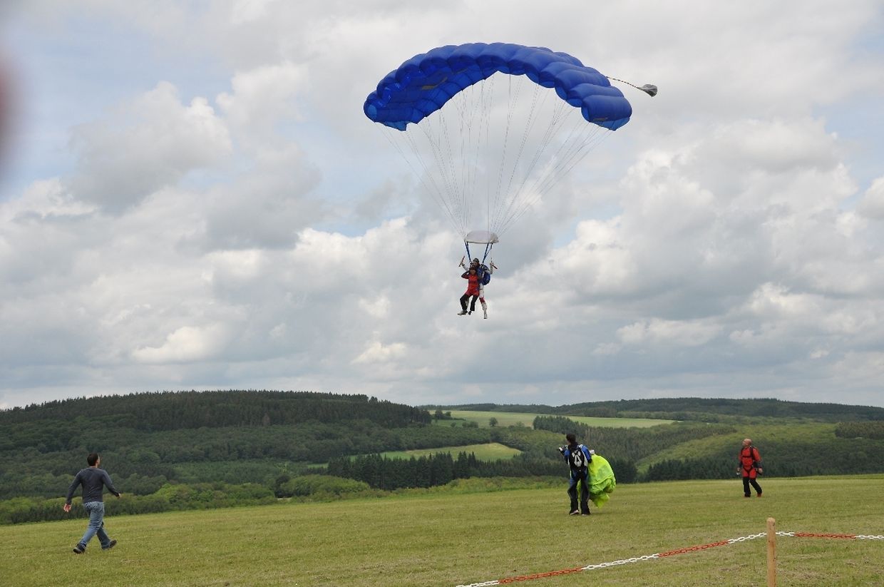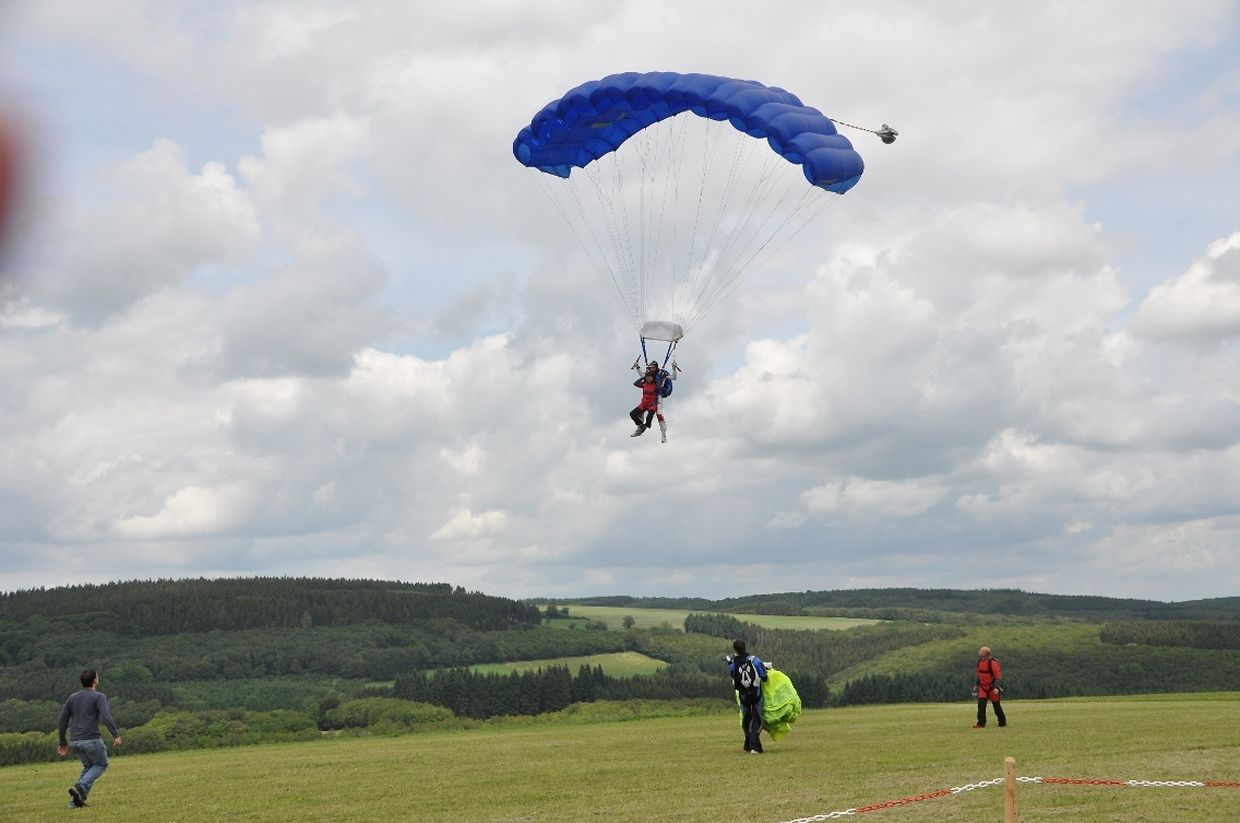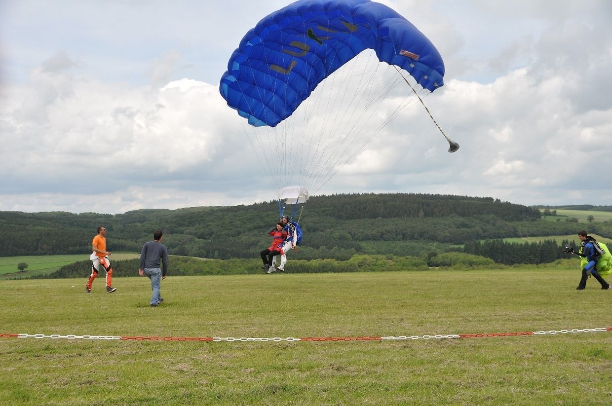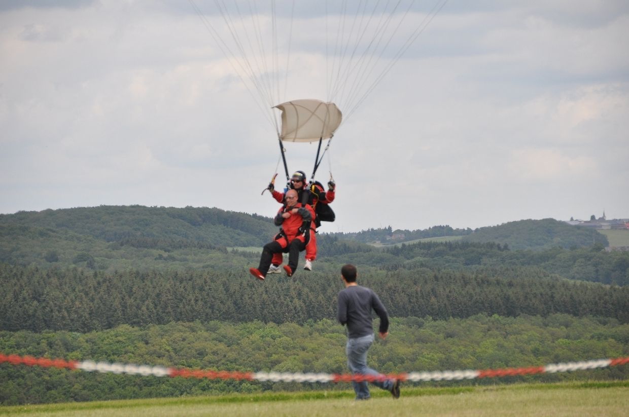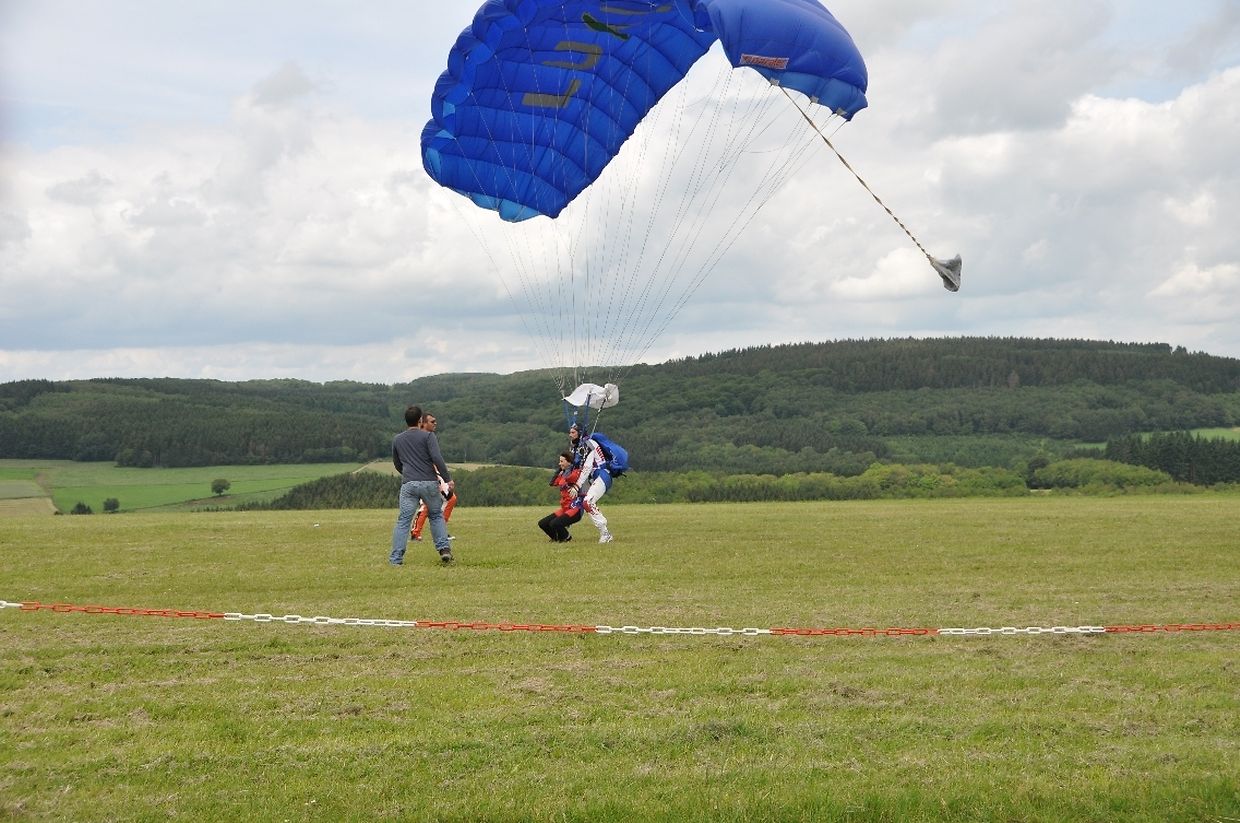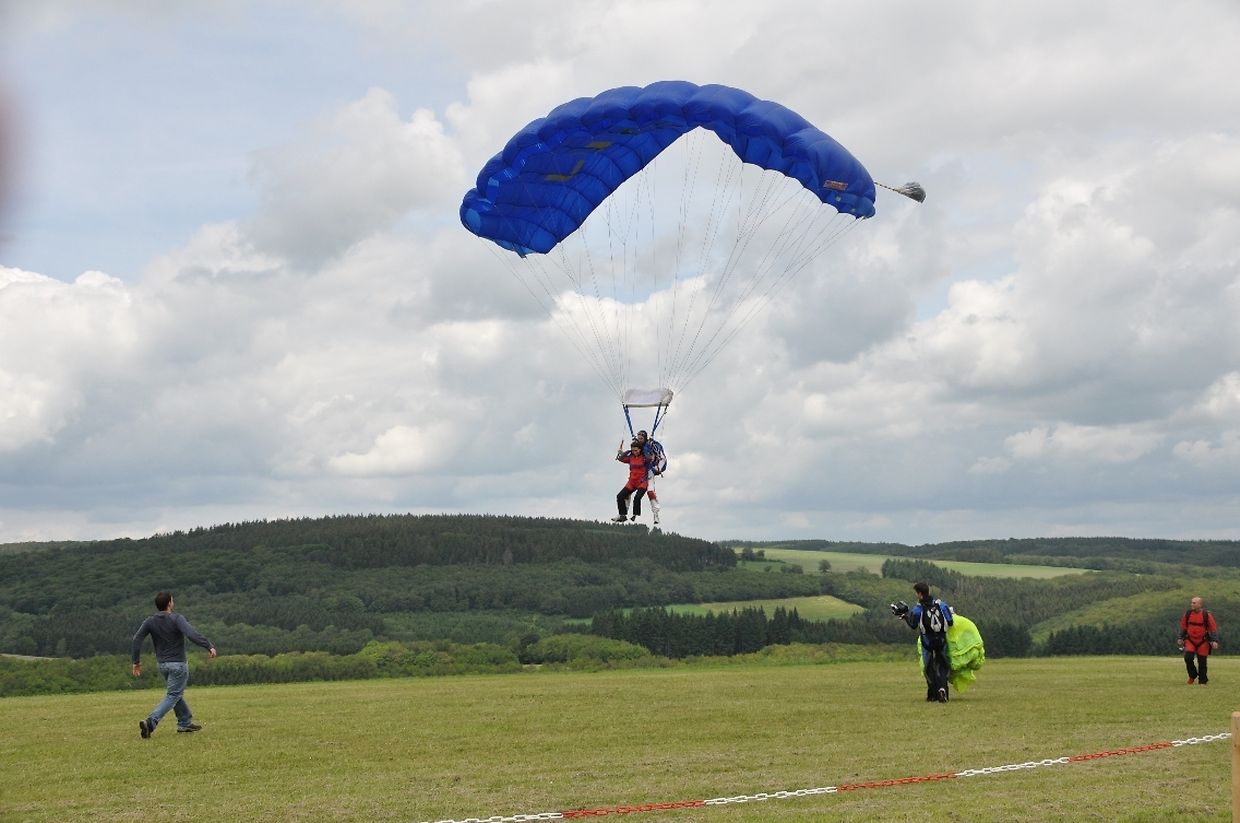 Eng feieren um Buedem die aner loossen sech vum Himmel falen.Aus 4000 mtr héicht sin se gesprong,enzel an am Tandem.Et ass schon interssant ze gesin wéi déi vum Cercle Para Letzebuerg gewessenhaft hir Fallschirmer an dat wat se undin preparéieren dat se och ganz ennen ukommen.Eng kleng Fotogallerie hun ech ennen zesummen gestallt.