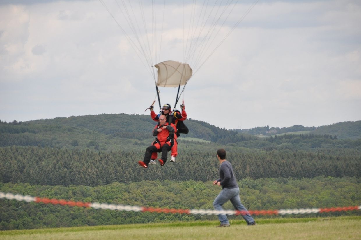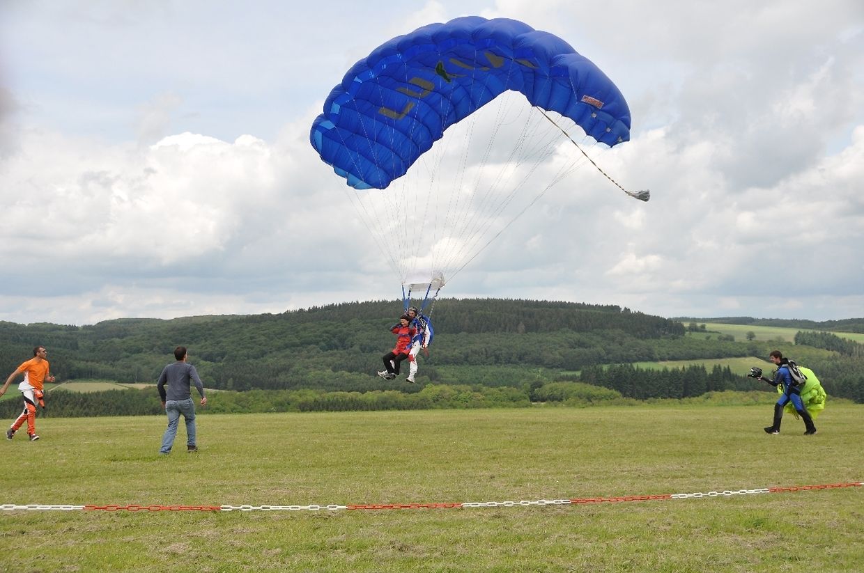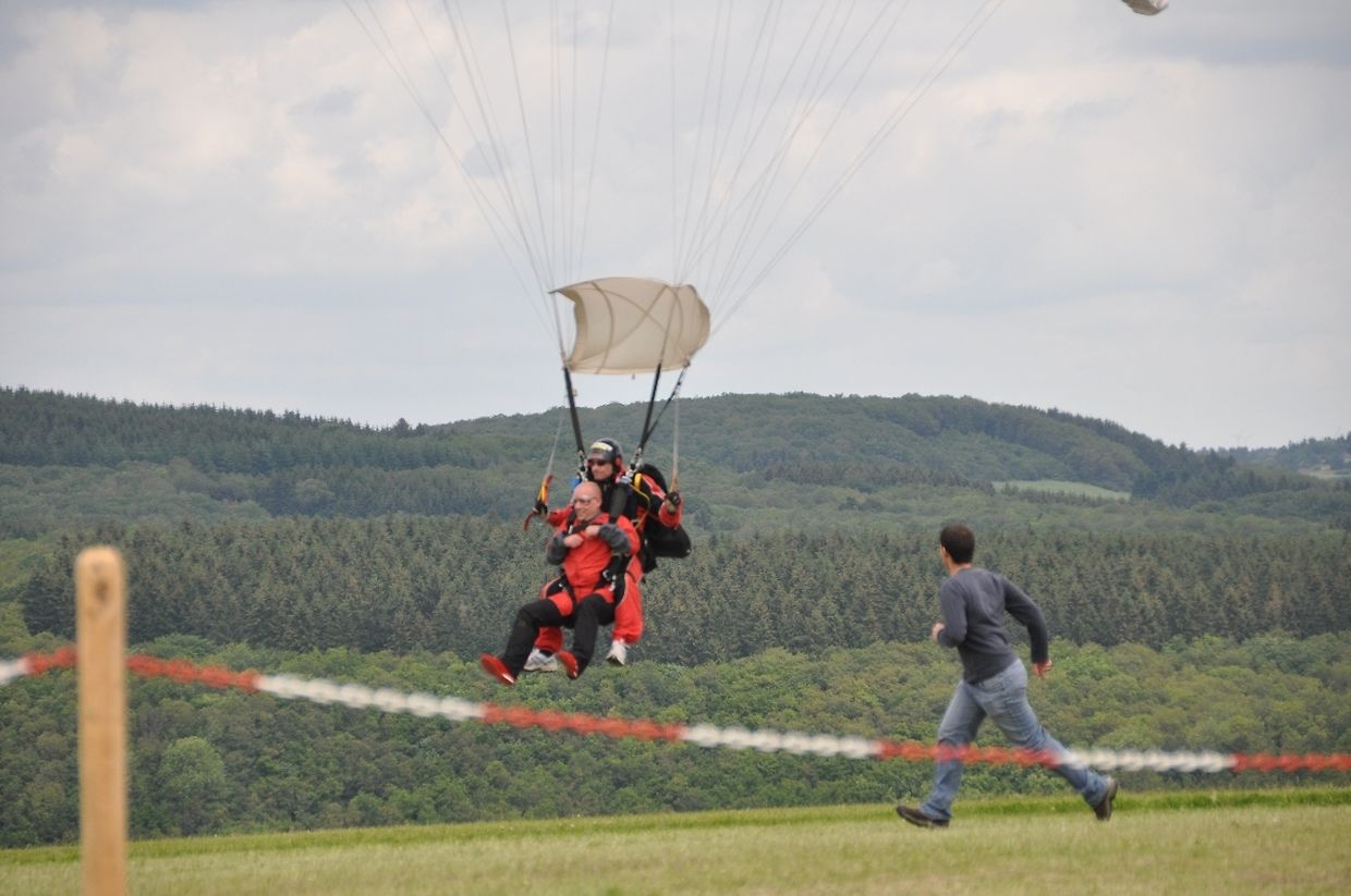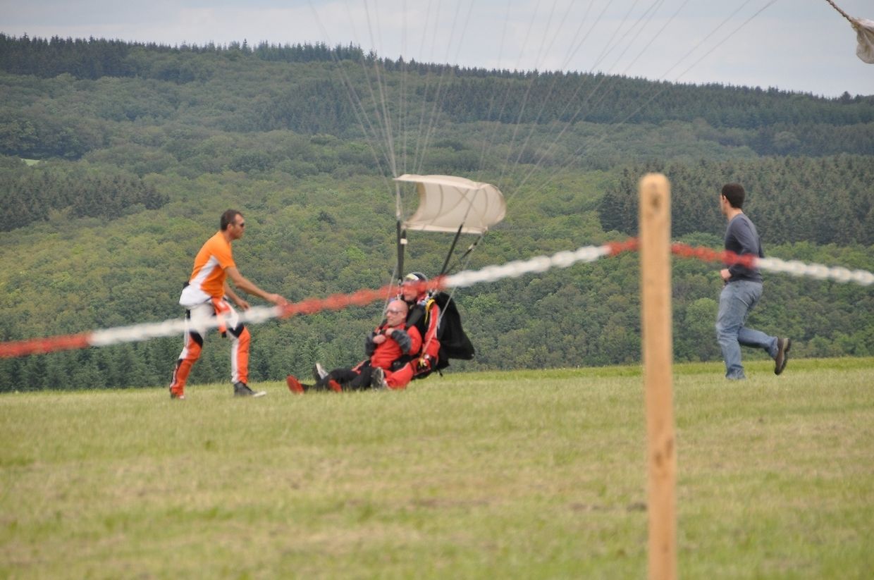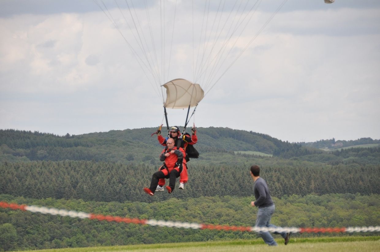 Eng feieren um Buedem die aner loossen sech vum Himmel falen.Aus 4000 mtr héicht sin se gesprong,enzel an am Tandem.Et ass schon interssant ze gesin wéi déi vum Cercle Para Letzebuerg gewessenhaft hir Fallschirmer an dat wat se undin preparéieren dat se och ganz ennen ukommen.Eng kleng Fotogallerie hun ech ennen zesummen gestallt.