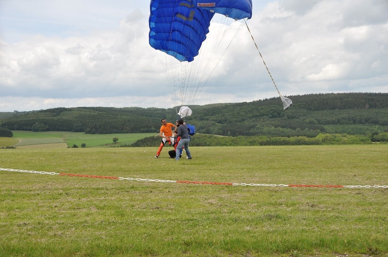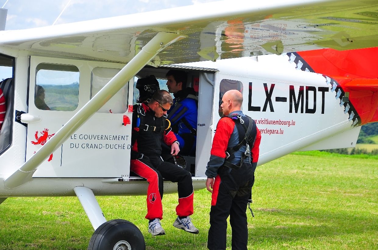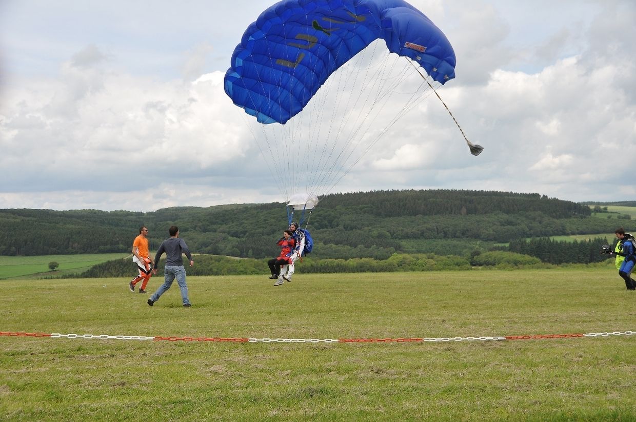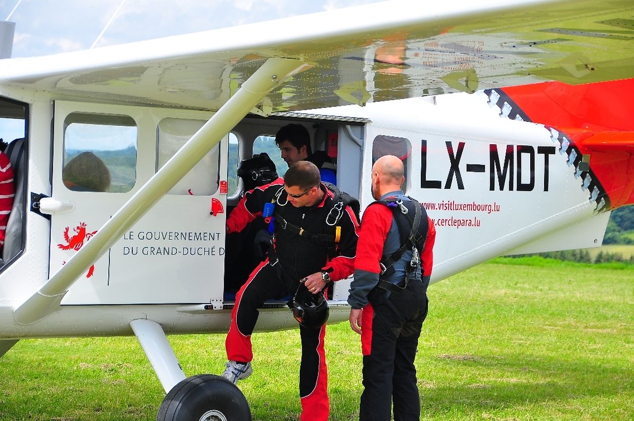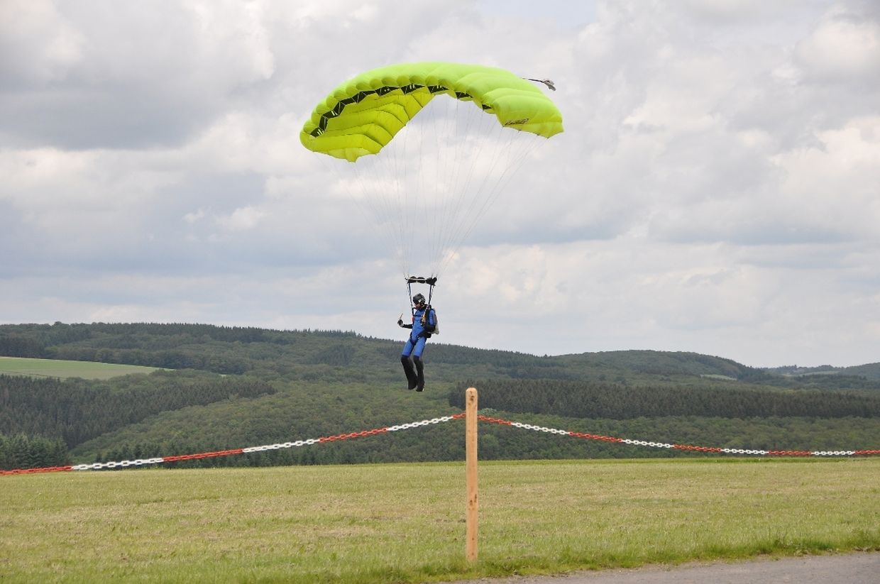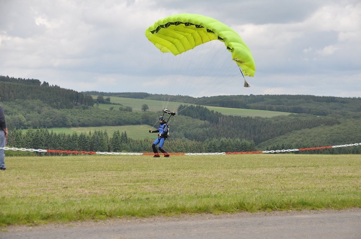 Eng feieren um Buedem die aner loossen sech vum Himmel falen.Aus 4000 mtr héicht sin se gesprong,enzel an am Tandem.Et ass schon interssant ze gesin wéi déi vum Cercle Para Letzebuerg gewessenhaft hir Fallschirmer an dat wat se undin preparéieren dat se och ganz ennen ukommen.Eng kleng Fotogallerie hun ech ennen zesummen gestallt.