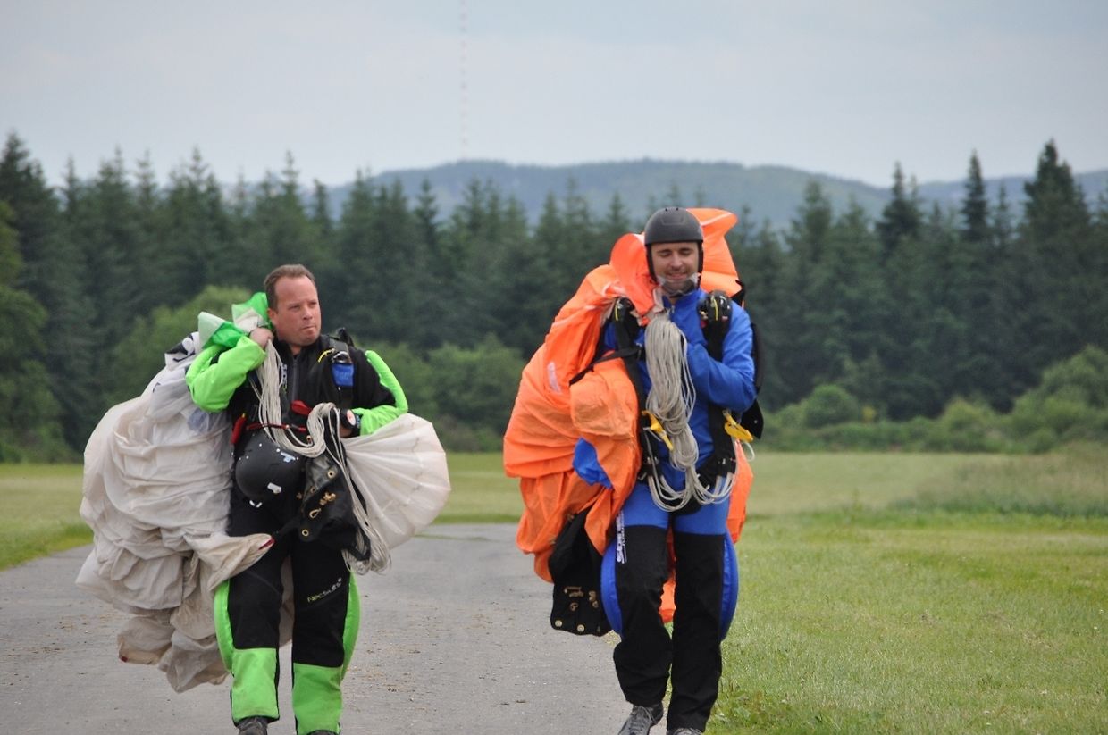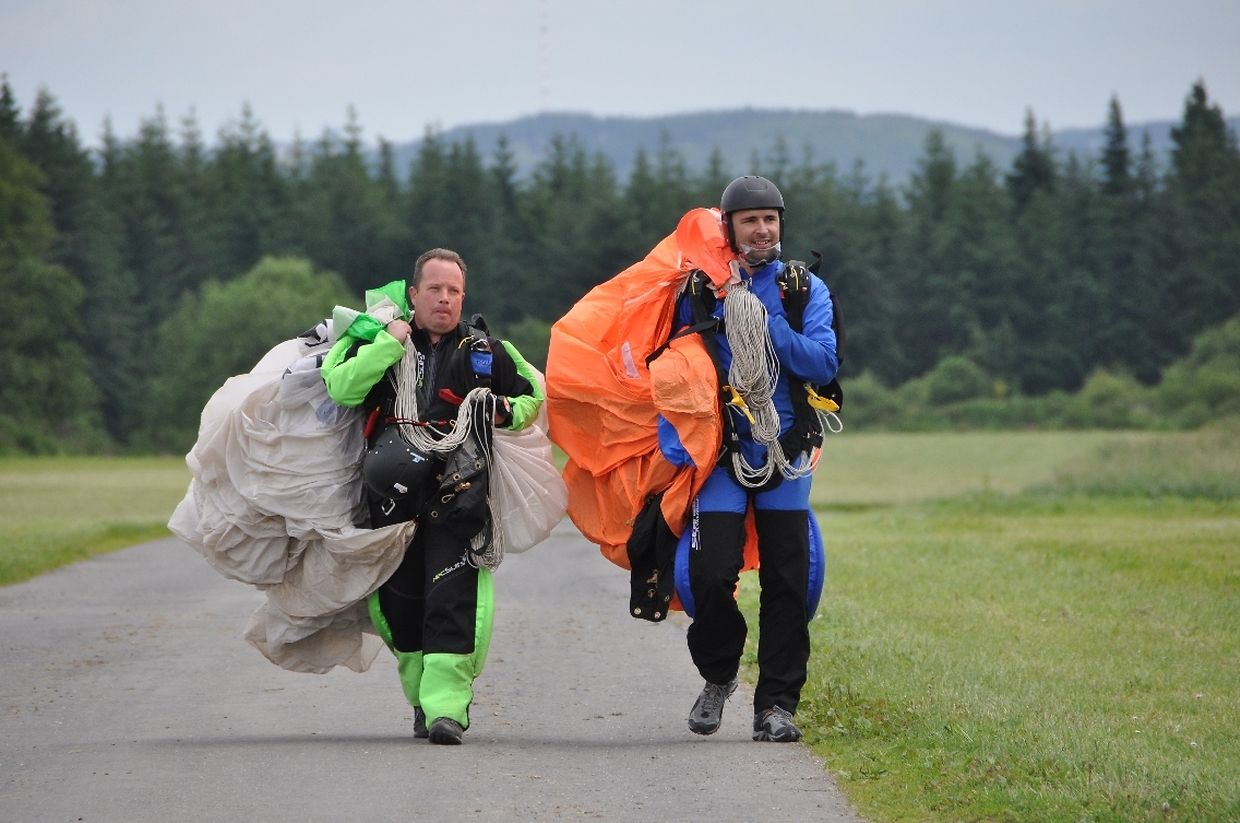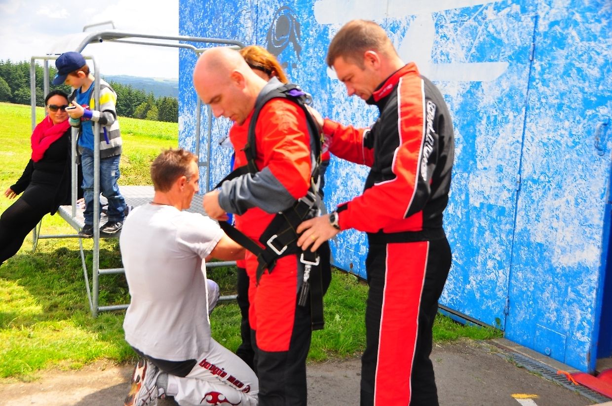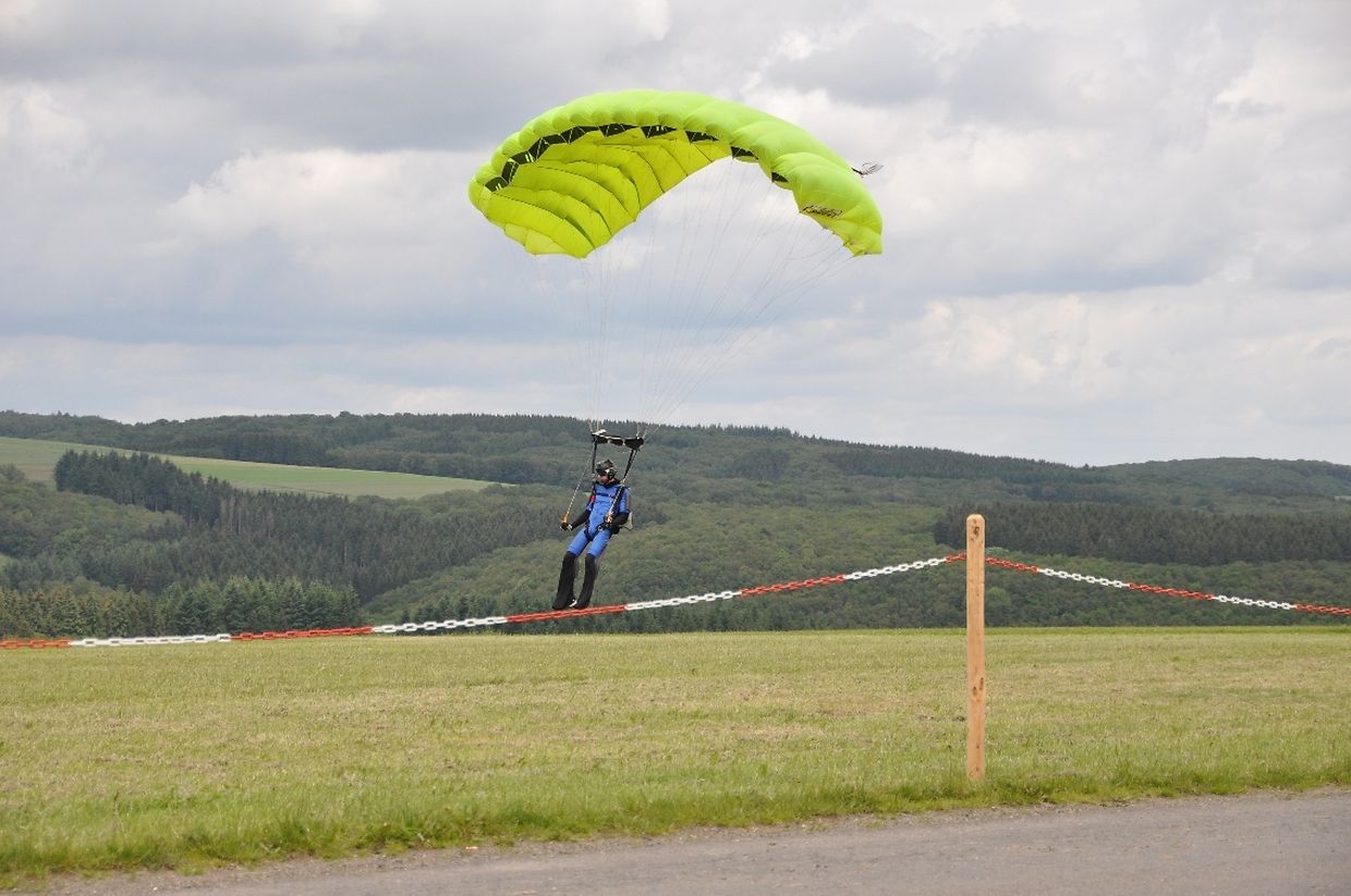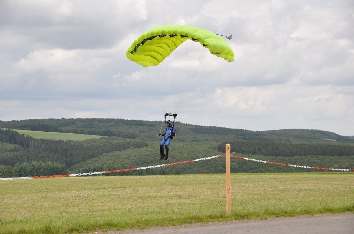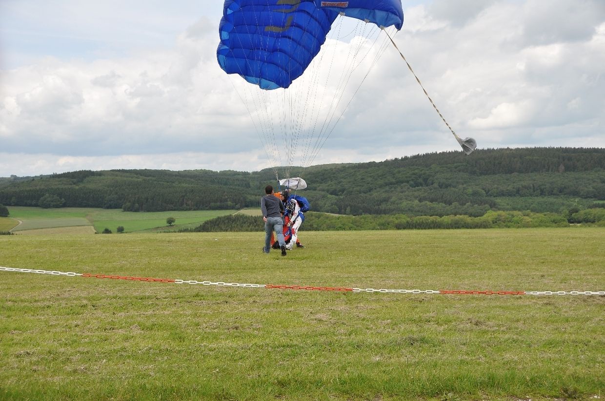 Eng feieren um Buedem die aner loossen sech vum Himmel falen.Aus 4000 mtr héicht sin se gesprong,enzel an am Tandem.Et ass schon interssant ze gesin wéi déi vum Cercle Para Letzebuerg gewessenhaft hir Fallschirmer an dat wat se undin preparéieren dat se och ganz ennen ukommen.Eng kleng Fotogallerie hun ech ennen zesummen gestallt.