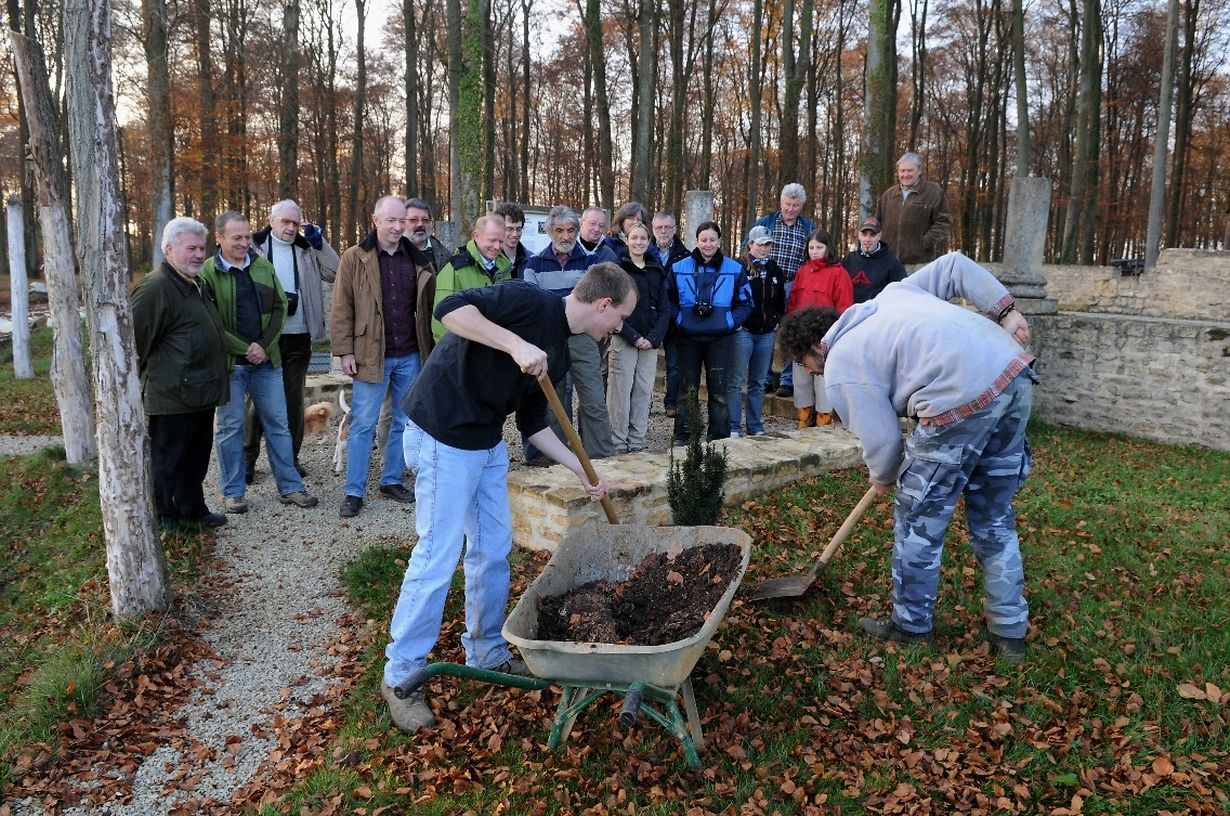 In Gegenwart der Gemeindeautoritäten von Koerich und Kehlen pflanzten „D’Georges Kayser Altertumsfuerscher“ Bäume im Vorhof der gallo-römischen Villa von „Miecher“. Dank der guten Kooperation mit Revierförster Marc Parries, welcher die Bäume vor dem Gebäude fällen lieβ, konnte dieser Bereich in den letzten Jahren wissenschaftlich untersucht werden. Die Ergrabung der gesamten Fläche im Waldgebiet südlich des Gebäudes konnte im Spätsommer dieses Jahres abgeschlossen werden. Hierbei kamen erstaunliche Ergebnisse zum Vorschein und es konnten bemerkenswerte neue Erkenntnisse gewonnen werden. Nur die gute Zusammenarbeit mit den Gemeinden Koerich und Kehlen ermöglichte dieses Resultat. Um die Fläche wieder teilweise auf zu forsten wurden neben einigen Obstbäumen zwei Eiben gepflanzt. Eibenholz wurde bereits in der frühen Antike benutzt um Holzeimer herzustellen. Zur Herstellung der Eimer aus den weltberühmten, spätkeltischen Adelsgräbern von Goeblingen-Nospelt benutzten die Treverer bereits im 3. Jahrzehnt vor unserer Zeitrechnung das Holz der Eibe. Foto: R.Faber ©