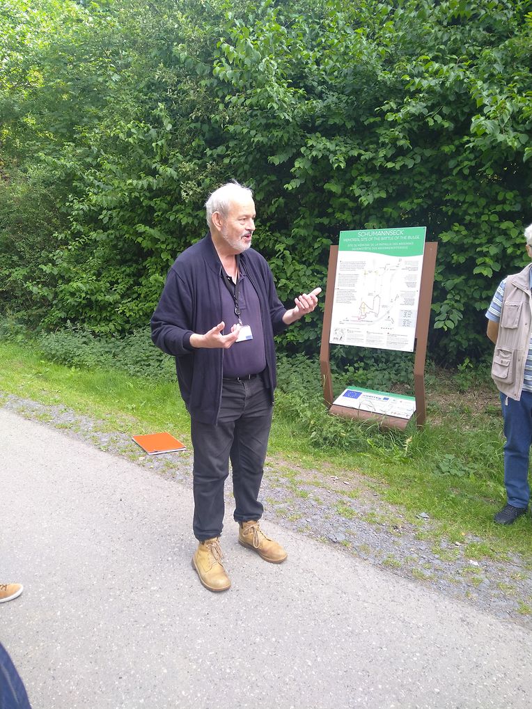 Op engem sonnegen Freideg am Juli hat de Verwaltungsrot von der Amicale LPL seng Memberen op de Schumann'seck invitéiert. Do wou d'Spueren von der Ardennenoffensiv, déi tëschen dem 27. Dezember 1944 am 21. Januar 1945 gelocht goufen, haut nach op engem Gedenkpad ze gesi sënn, hott den Här Frank Rockenbrod vom Nationale Musée fir Militärgeschicht eng ganz léierräich Féierung ogebueden. Bei all eenzel Statioun goufen et Erklärungen iwwert dat wat deemools do geschitt ass. Mat moderner an digitaler Technik ass et haut méiglech sech op der Platz Filmdokumenter an Tounopnamen unzekucken an unzehéieren. Ech war bis elo e por mol op dem sougenannte "Lieu de Mémoire" an dem Här Rockenbrod seng Ausféierungen hon vill eenzel Detailer aus den Zaldoten hirem batteren Alldag bildlech gemaach. Ech war och eng Kéier am Wanter op der Plaz, wéi eng Spuer Schnéi louch. Deemools honn ech dann och nach e bësse von der Keelt gespuert déi et am Wanter 44/45 gouf. Et kann een sech nëmme verneige viron dem Asaaz von deene jonken Zaldoten, déi fir eis Fräiheet hiert Liewe ginn honn. A viron deenen, déi e grousst Affer brocht honn a sécher hiert Liewe laang beandrockt, wann net traumatiséiert waren.
