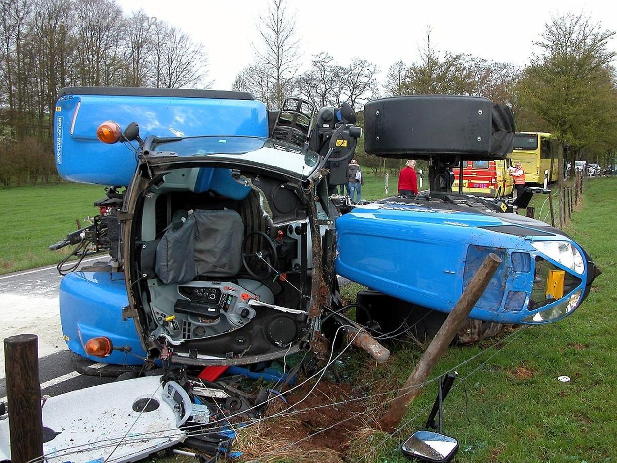 Eine Traktorfahrerin verlor am 27. April gegen 7.40 Uhr die Kontrolle über die Maschine, nachdem Sie einen entgegenkommenden Bus kreuzte. Sie geriet in den Sommerweg und der Traktor kippte anschließend seitlich um. Die Fahrerin wurde beim Unfall nur leicht verletzt. (Foto: Polizei)