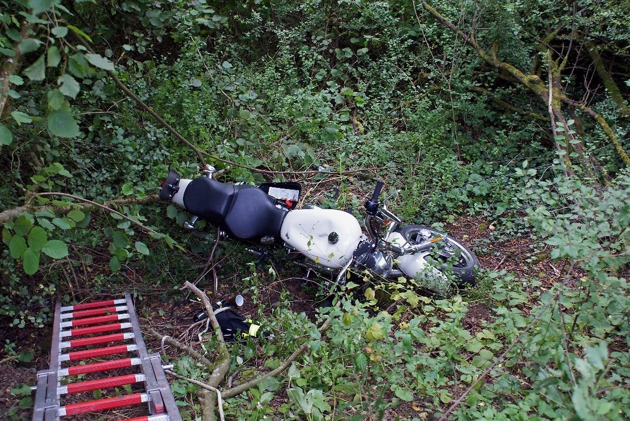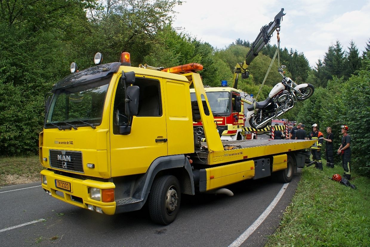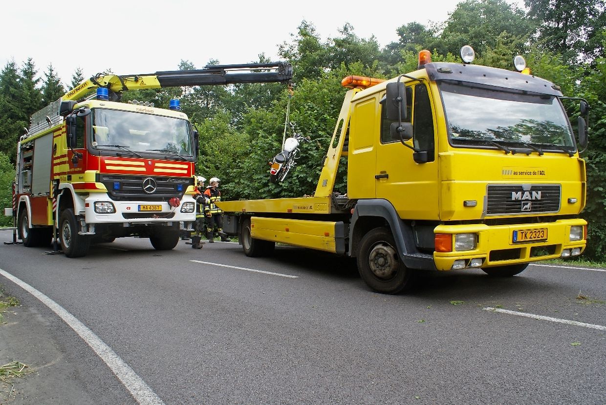Eine Motorradfahrerin, die aus Richtung Oberdonven kam, hatte am Ende einer scharfen Linkskurve die Kontrolle über ihr Motorrad verloren und war geradeaus in den Sommerweg gefahren. Dort fiel das Motorrad samt Fahrerin einen acht Meter tiefen Abhang hinunter. Die Motorradfahrerin blieb dort im Gestrüpp schwer verletzt liegen und musste aus ihrer misslichen Lage befreit werden. Nach einer Erstversorgung durch den Notarzt vor Ort wurde die Motorradfahrerin ins hauptstädtische Centre Hospitalier eingeliefert. Im Anschluss musste das Motorrad mit Hilfe eines Kranes geborgen werden. Während der Dauer der Rettungs- und Bergungsarbeiten blieb die Strecke zwischen Oberdonven und Niederdonven für den Verkehr gesperrt.