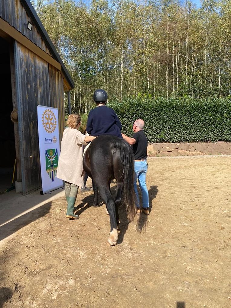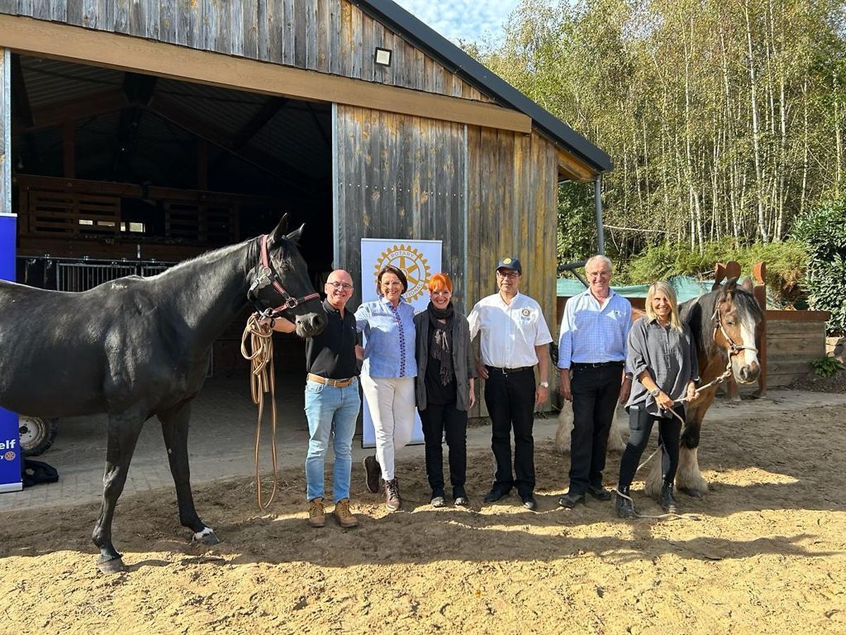 Bewohner des Alzheimerwohnheimes in Erpeldange-sur-Sûre, begleitet von einer Ergotherapeutin, einer weiteren Betreuerin sowie der Direktorin, profitierten von dieser Zusammenarbeit von Rotary Diekirch-Ettelbruck mit der Besitzerin des Pferdestalles, Frau Claudine Speicher, in der idyllischen Umgebung von Oberfeulen.