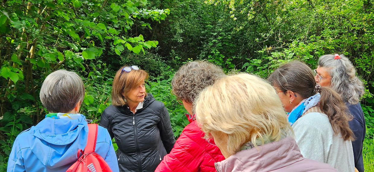Am Startpunkt, dem „ale Wäschbuer“, wurden die Teilnehmer von Schatzmeisterin Romy Kieffer-Thill im Namen des Vereins begrüßt, bevor Frau Hoffmann auf einen achtsamen und respektvollen Umgang mit der Natur hinwies. Der gemütliche Spaziergang führte zu ungedüngten Wiesen, wo schon am Wegesrand zahlreiche Kräuter wie Knoblauchsrauke, Giersch, Nelkenwurz oder Wiesenbärenklau entdeckt und mit Anekdoten erklärt wurden. Das Sammeln erfolgte gezielt und stets mit Respekt vor der Natur, nur in der benötigten Menge.