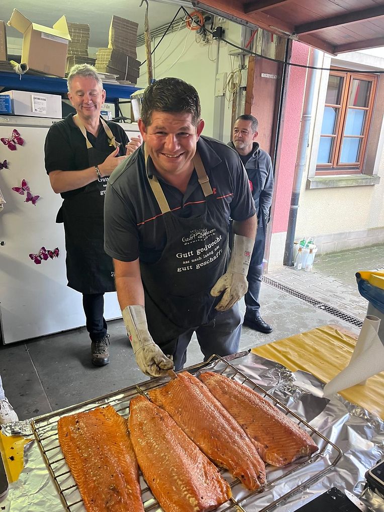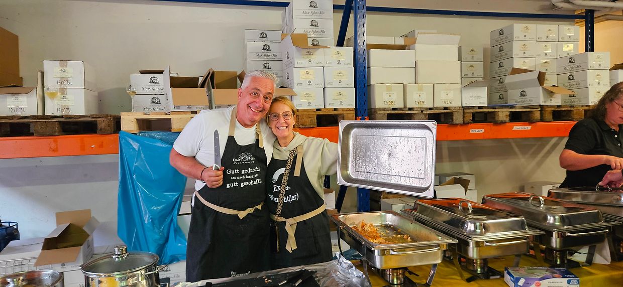 Die Vorfreude war groß, doch die Wetterprognose unerbittlich: statt Sonne drohte heftiger Regen. So entschied sich der "Gaart an Heem Uewerkäerjeng asbl", seinen Stand nicht wie geplant im Freien, sondern in Inneren der Privatkellerei Max-Lahr aufzubauen. Eine logistische Herausforderung, die das Team mit Bravour meisterte - die Entscheidung war goldrichtig. Wohl gab es hier weniger Laufkundschaft, doch die Besucher, die dem Regen trotzten, wurden mit einem herzlichen Empfang und dem gewohnt persönlichen Service belohnt. Auch wenn das finanzielle Ergebnis am Ende nur knapp die Unkosten deckte, war der wahre Erfolg ein anderer: die Qualität des Essens begeisterte, und die Gäste zeigten ihre Wertschätzung, indem sie dem Team tatkräftig entgegen kamen.