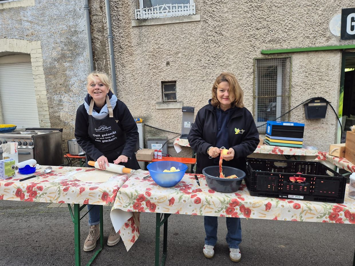 D'Äppel op de sur place gebakenen Taarten an an den Äppeltäschen sinn all biologesch. Absolute Renner awer bleift ... deen äusserst beléiften Hausmaacher-Pâté, och deen ass selwergemaach. De Comité huet es dëst Joer duebel esou vill virbereet ewéi soss, an dach - trotz dëser Mass ass och deen nees séier ausverkaaft. Ma niewt dësem Klassiker ginn awer och nach aner regional Produkter ugebueden, ewéi Hunneg, Kürbisse, Nëss, Äppelchips an....