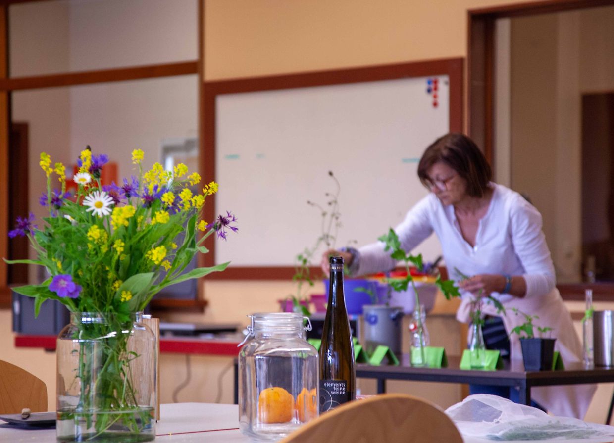 Hier Entdeckungsfreedegkeet gouf prompt belount, well d'Madamm Hoffmann - diploméiert Kraiderpedagogin - wousst souverän an op Anhieb ze iwwerraschen a begeeschteren. Fonnt, erkläert a bestëmmt goufe e sëllege frësch Kraider äus ongedüngte Wisen, an dat in Hülle und Fülle: eng richteg Pracht. Virsiichteg gouf grad esouvill agesammelt, ewéi néideg war, fir nëmmen zwou Stonnen drop gemeinsam e leckert Mëttegiessen op den Dësch ze zauberen. Köstlech huet dëst alle gefall a geschmaacht, wéi hier zefridde Gesiichter verroden hunn. A refaire.