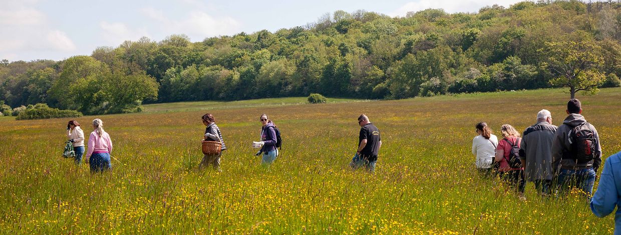 Kaiserwieder zu Uewerkäerjeng: an idyllesch Kulisse - virun deen ale Wäschbuer - hat de "Gaart an Heem Uewerkäerjeng" dëser Deeg interesséiert Memberen agelueden: fir un enger Kraiderwanderung Deel ze huelen.