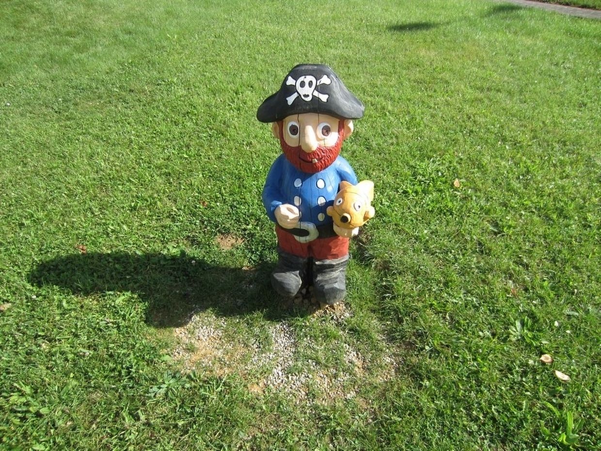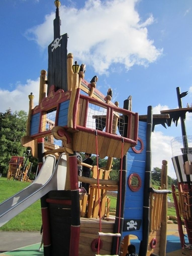 Eine zweite Holzkonstruktion, etwas oberhalb des Schiffes, steht auf einem Kiesbett, wo sich die kleinen "Piraten" in ihrem Unterschlupf mit verschiedenen Vorrichtungen amüsieren können.