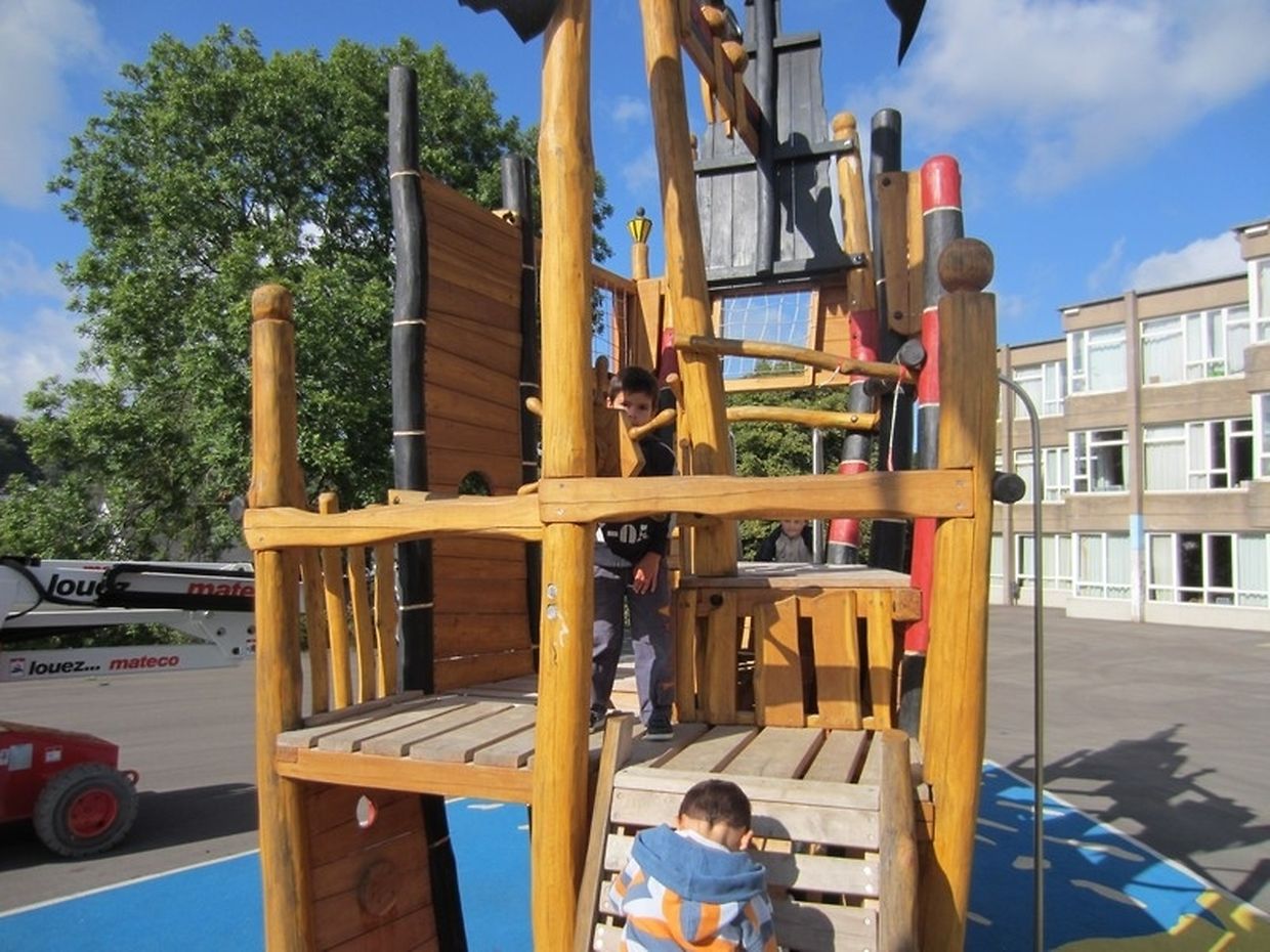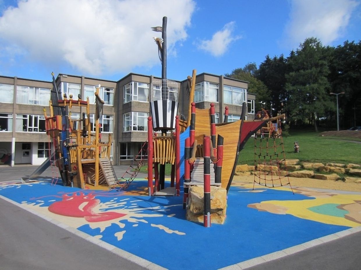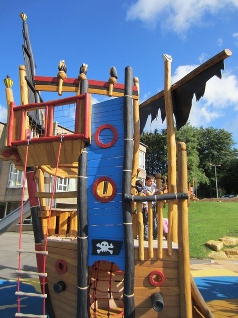 Ein neuer Spielplatz endstand im Schulhof der Bock-Schule. Auf dem hier "gestrandeten" Piratenschiff können sich die Kinder während der Pausen und in ihrer Freizeit austoben. Es handelt sich bei dem Schiff um eine Holzkonstruktion, die auf einem speziellen Gummiuntergrund aufgebaut ist. Damit wird die Verletzungsgefahr für die Kinder verringert. Das Schiff kann mittels Leitern und Treppen bestiegen werden. Außerdem sorgen eine Rutsche und die Schwebebrücken für viel Spaß.