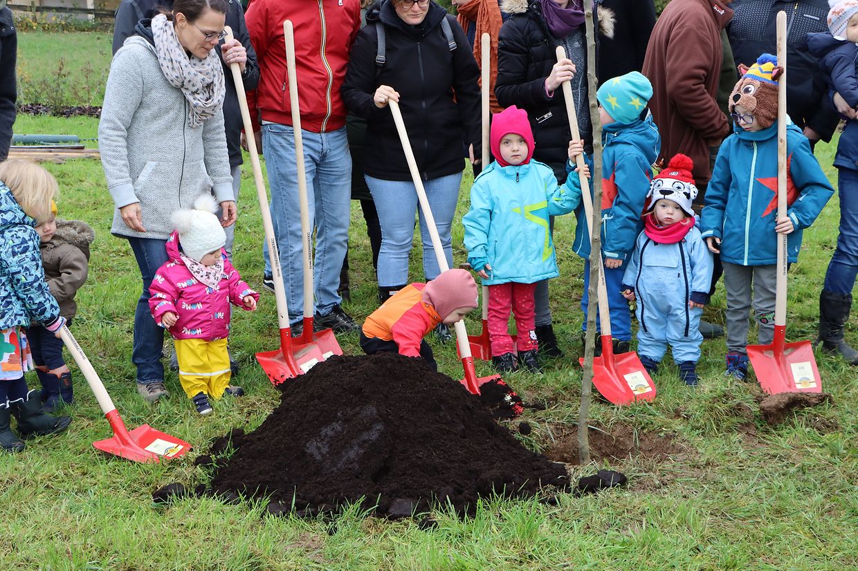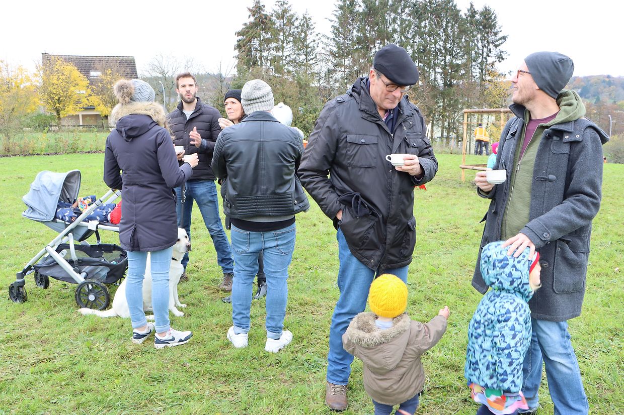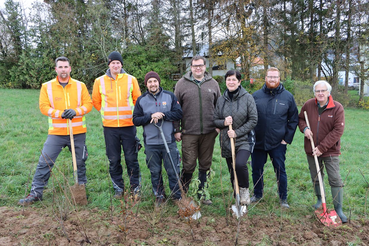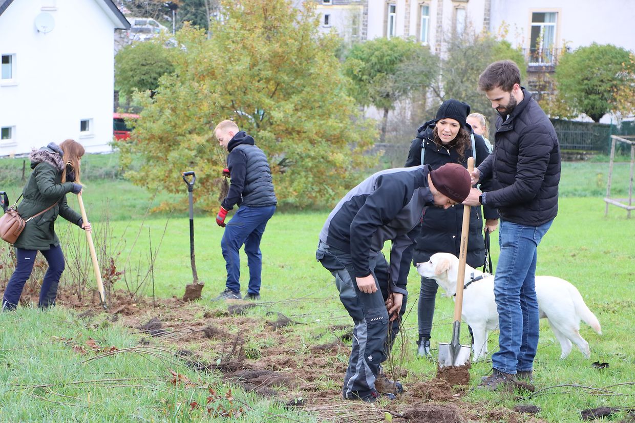 D’Buergermeeschtesch Marion Zovilé-Braquet, d’Schäffe Fernand Schiltz an Tom Jungblut a Membere vum Gemengerot hunn un der Planzaktioun deelgeholl. No der Planzaktioun huet de Schäfferot all d'Participanten op e gudde Schocki an op Glühwäin invitéiert.