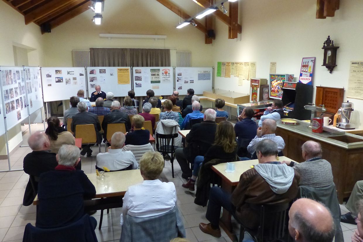 Den Här Jean J. Schintgen, fréiere Generalsekretär vun der Horesca huet dëst Thema mat engem ganz flotte Referat begleet. Heibäi ass hien op d‘Geschicht an d’Entwécklung vun den Duerfwiertschaften agaangen. Hien huet mat enger Partie historeschen Anekdoten, a mat vill Sachkenntnis zum Beruff vum Wiert a senger Aarbecht, déi fréier Aktivitéit an der Wiertschaft erkläert. Wat soss de sozialen Treffpunkt vun den Duerfbewunner duergestallt huet, ass leider mat der moderner Zäit an den Hannergrond geréckelt. Esou ass dann och d‘Zuel vun de Caféen, de Bistroen an de klengen Duerfbutteker mat de Jore staark zeréck gaangen.