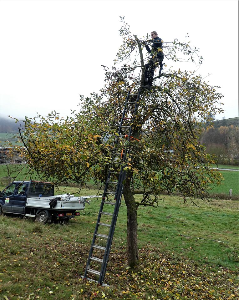 An ganz unterschiedlichen Obstbäumen in Olm, Nospelt, Bettendorf und Roodt setzten die Teilnehmer ihr Wissen in die Praxis um. Hoch in den Wipfeln der Bäume und auf dem Boden lernten sie unter den wachsamen Augen des Seminarleiters verschiedene Techniken mit großen und kleinen Schneidegeräten.