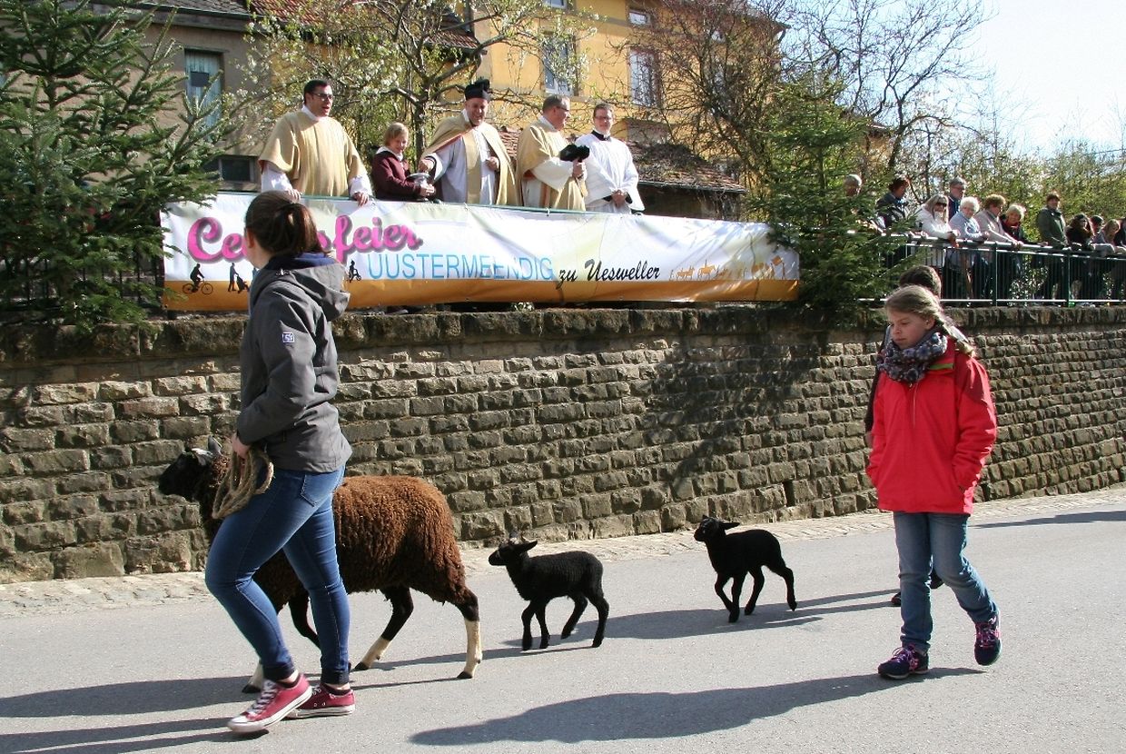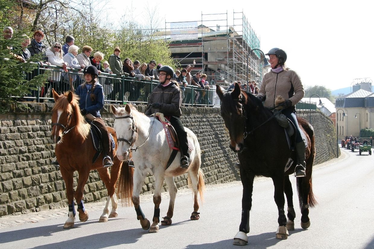 Seit über 300 Jahren wird der heilige Celsus in Osweiler verehrt. Gemäβ dieser alten Tradition stand der Ostermontag auch in diesem Jahr ganz im Zeichen des Bauern- und Pferdeheiligen. Am Nachmittag zelebrierte der Festprediger H.H. Kaplan Ricardo Monteiro das Hochamt zu Ehren des heiligen Celsus in der Pfarrkirche. Ihm assistierten die Geistlichen Carlo Morbach, Joël Santer und Luc Schreiner sowie der Seminarist Jacques Bruns. Unter der Leitung von Thomas Osborne sorgte die „Chorale réunie Rouspert-Uesweller“ mit Véronique Feltes an der Orgel für die gesangliche Umrahmung des feierlichen Gottesdienstes, unter anderem mit dem Vortrag von zwei lokalen Celsusliedern. Nachdem das Wasser, der Hafer und die Ostereier gesegnet worden waren, verlagerte sich die Feier vor die Kirche.